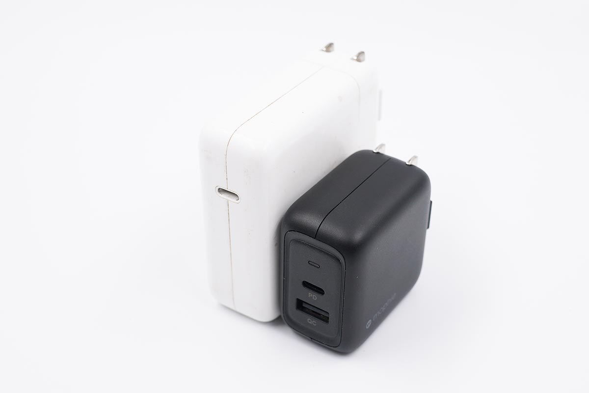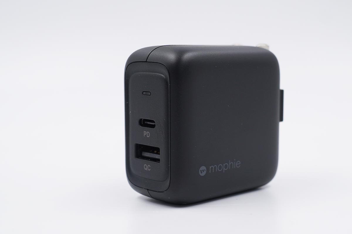 mophie 1A1C充电器相较于原装20W PD充电器来讲做了升级,首先在功率相同的情况下增加了USB-A输出接口,可以同时为两台设备提供充电。其次插脚可以折叠,出行的时候利于收纳整理,而且放在包里也不会划伤设备。