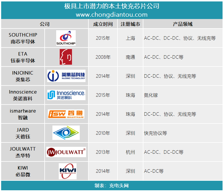 充电头网为大家分享8家潜力巨大的国产半导体芯片潜在独角兽,一起见证他们的成长之路。分别是钰泰半导体、英集芯、英诺赛科、智融、天德钰、杰华特、必易微、南芯,这些快充芯片公司的产品大都围绕着AC-DC、DC-DC、功率器件等领域的应用。