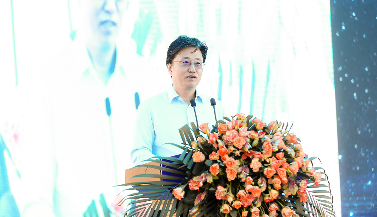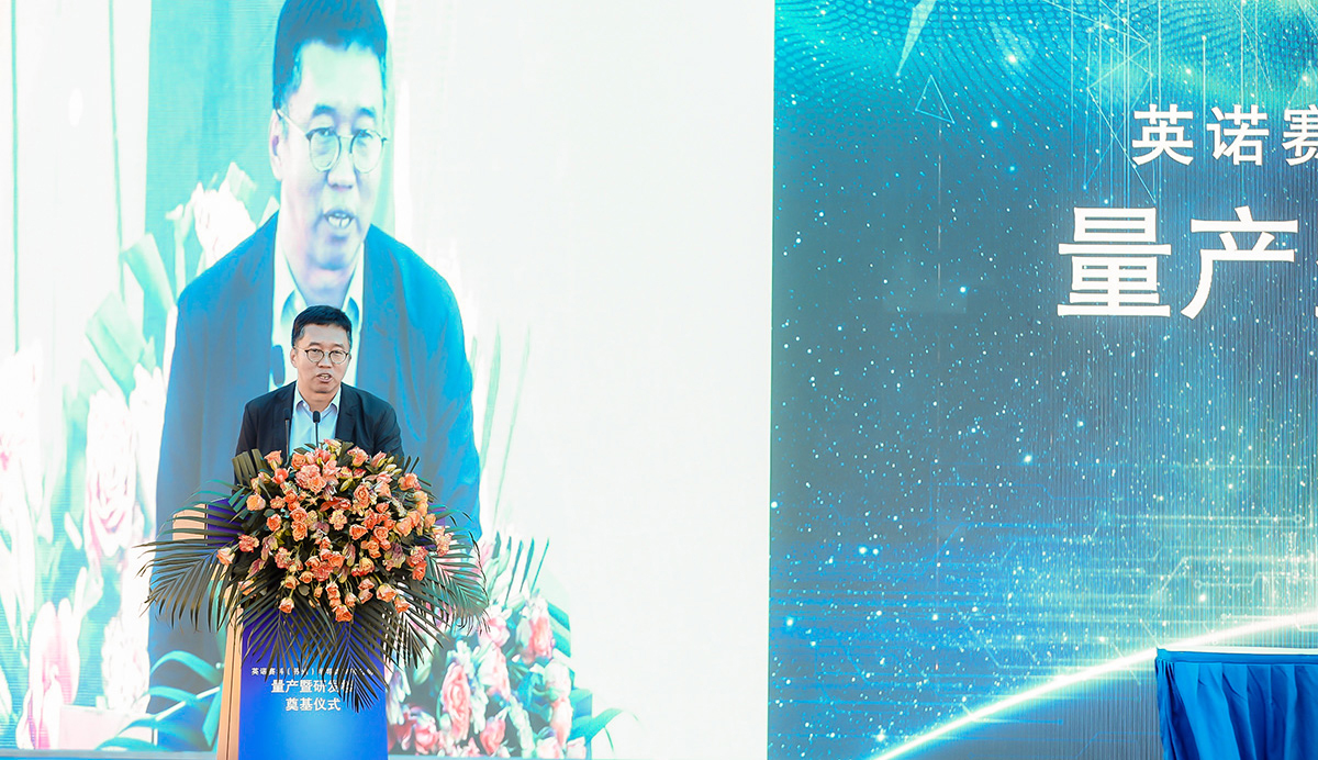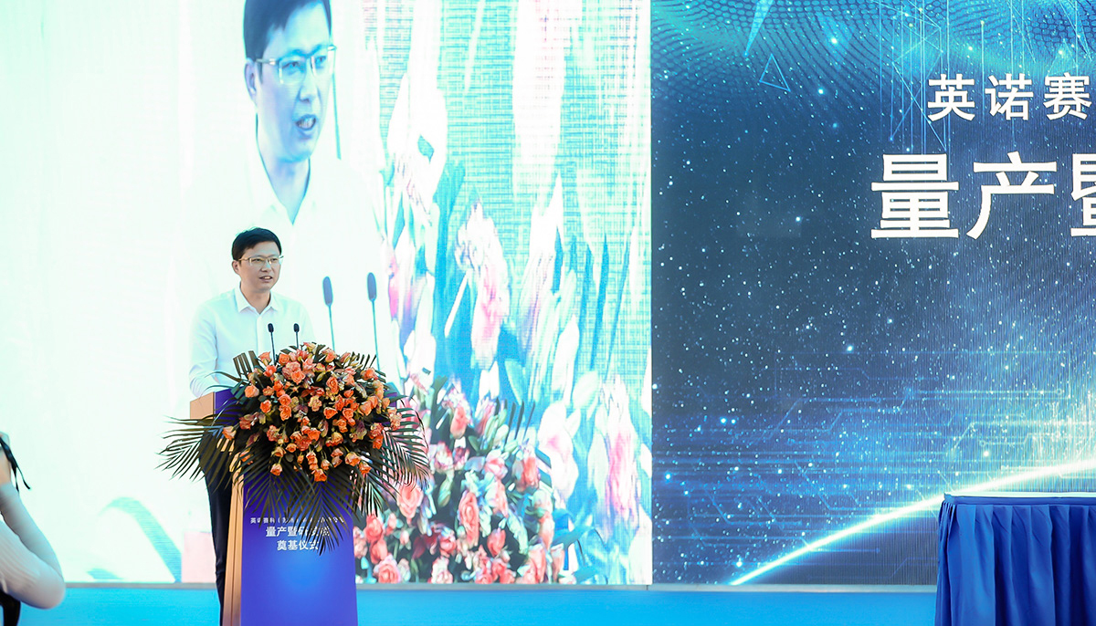 吴江区委常委、副区长钱宇在仪式上致辞,对英诺赛科苏州氮化镓生产基地的通线量产表示祝贺。