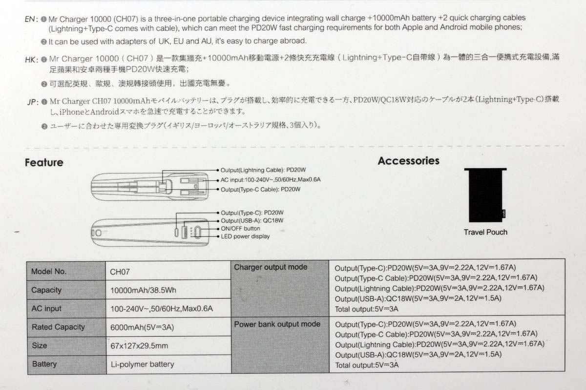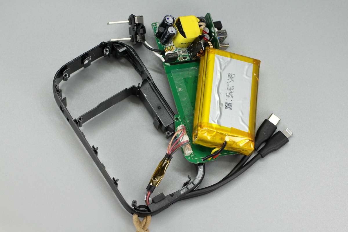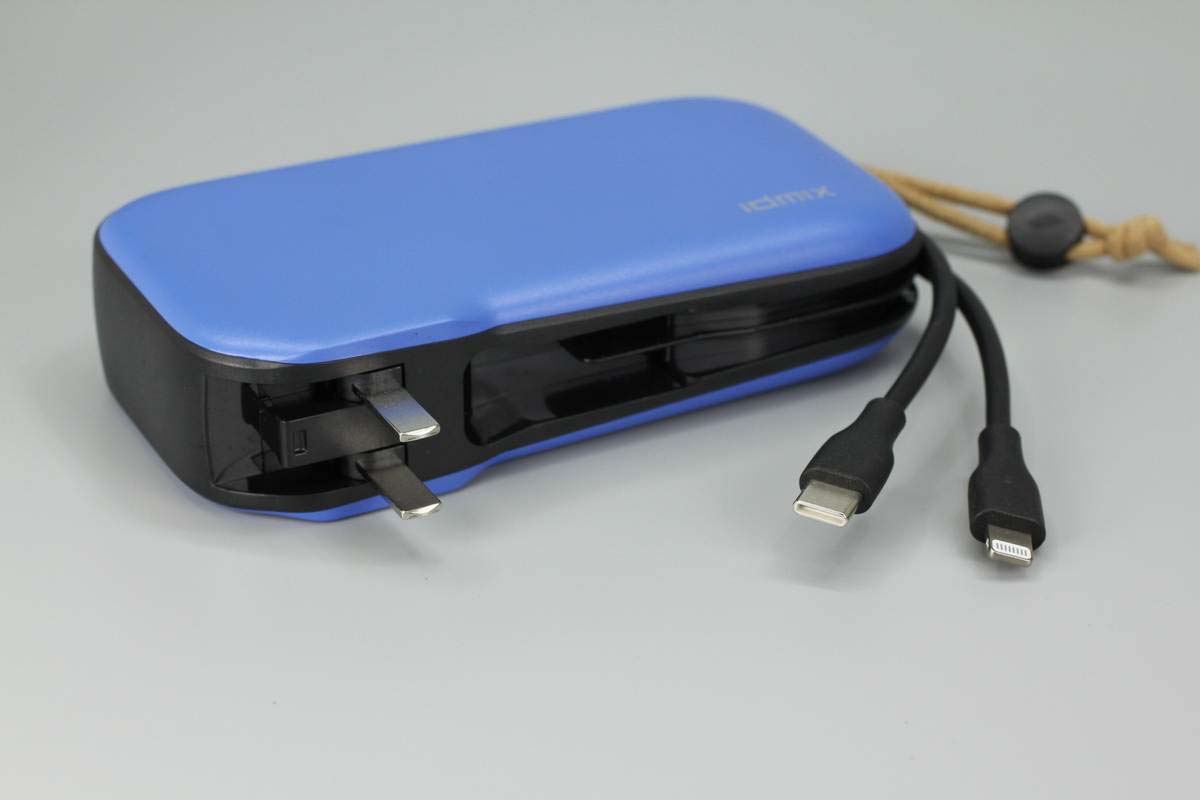 另一侧有折叠AC插脚、USB-C和Lightning线,并设有凹槽收纳,不影响产品整体的便携性。