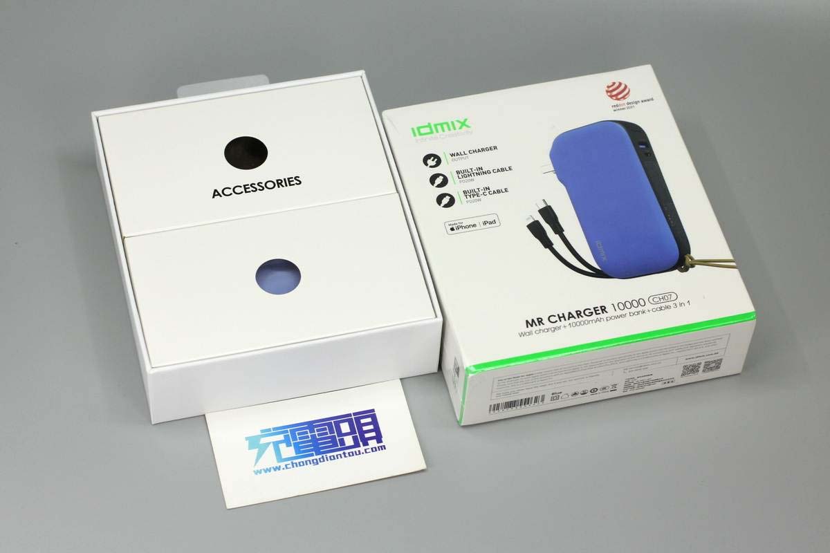 最近充电头网拿到了IDMIX大麦一款三合一移动电源CH07,该产品集成PD快充充电器和移动电源,并自带USB-C和Lightning输出线缆,无论是iPhone还是安卓机,都能使用,最多可同时给四台设备充电。而且这款产品不仅通过了苹果MFi认证,还获得红点奖,可以说非常的不一般。下面我们就对这款产品进行详细拆解,看看其具体设计做工。