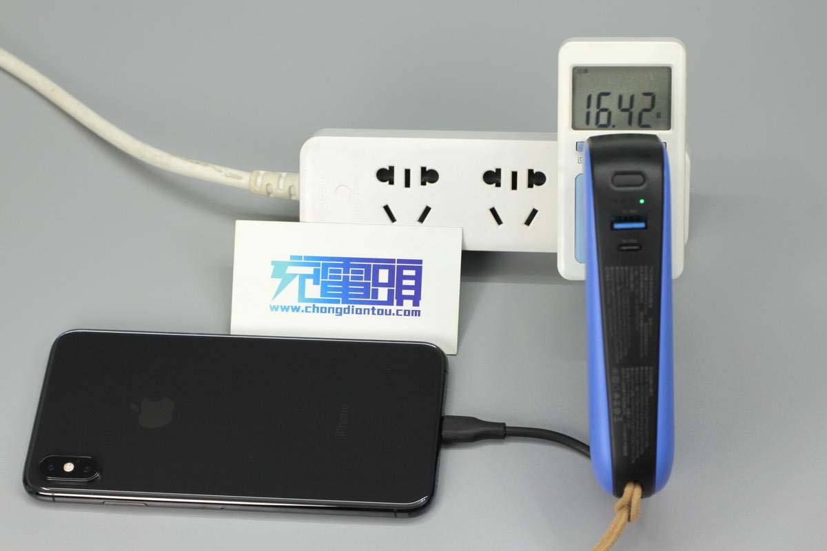 另外测得移动电源模式下,使用USB-C接口给iPhone X充电,输出功率为8.98V 2.05A 18.36W。