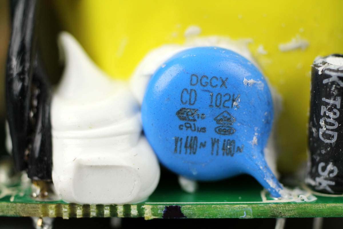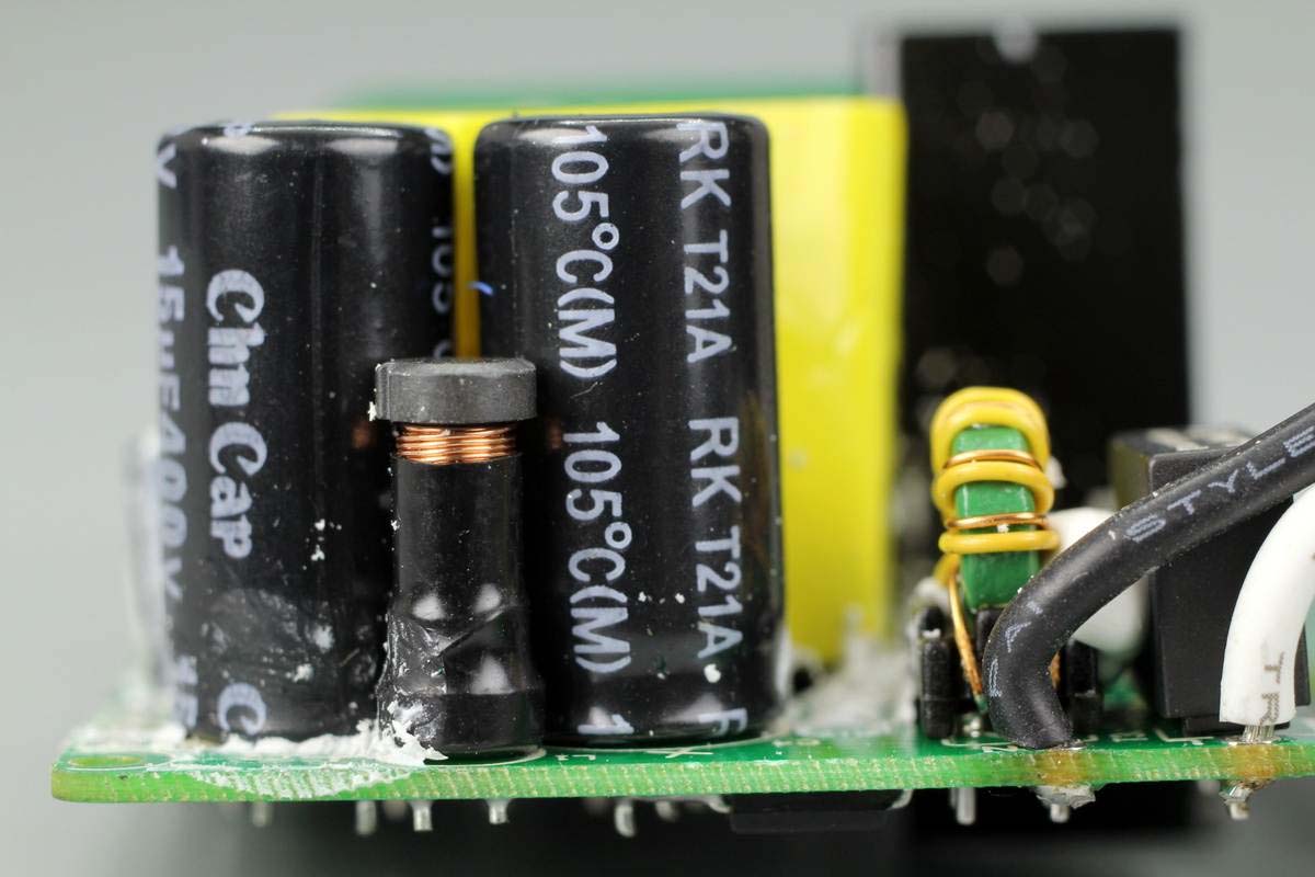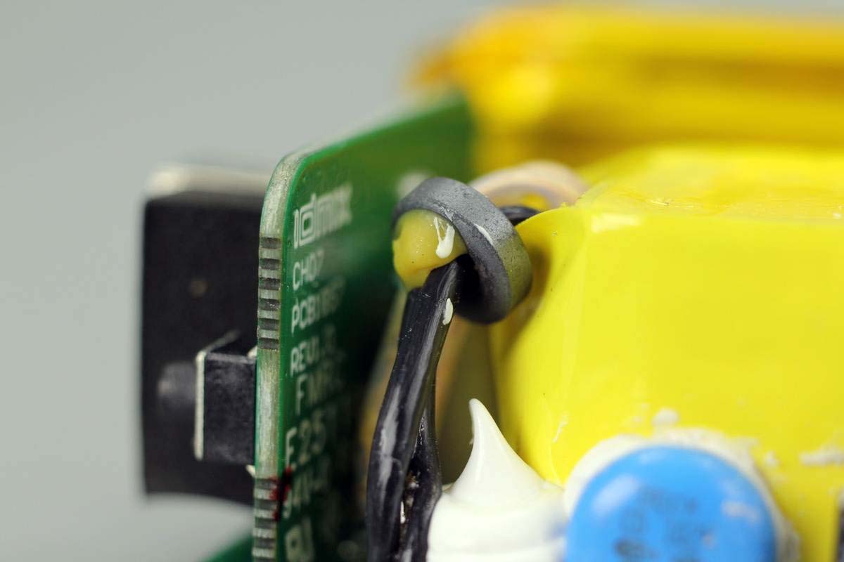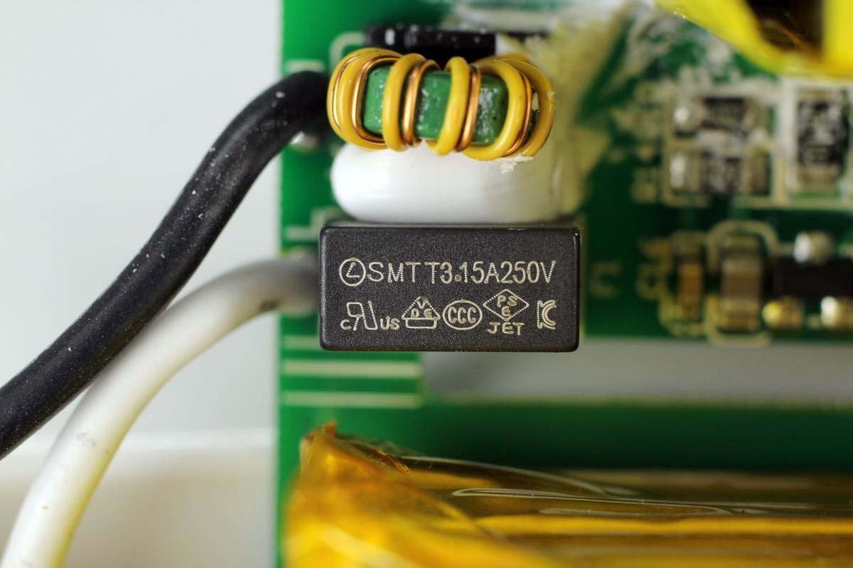 保险丝规格为3.15A 250V,共模电感双线绕制,两颗器件打胶加固。