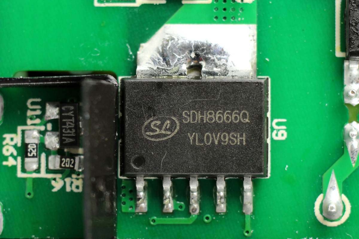 充电器主控芯片采用士兰微SD8666QS。这是一款用于开关电源的内置高压功率MOSFET、外置采样电阻的准谐振电流模式PWM+PFM控制器。其支持多重模式控制,可有效减小开关损耗、提高转换效率和降低待机功耗;支持抖频功能改善EMI特性;支持全面完善的保护功能。