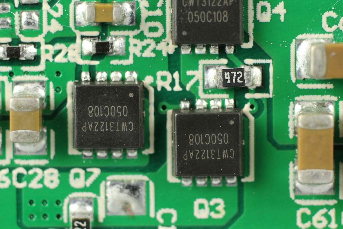外挂四颗MOS管实现双向同步升降压,丝印CWT3122AP。