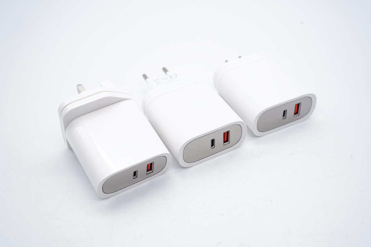 迪品乐这款充电器机身光滑简洁,可方便客户进行差异化定制,同时配备美、欧和英规插脚,通过了CB、CE、FCC、ETL、RoHS等认证,满足欧美等海外市场安规认证要求。充电器配备1A1C接口,支持QC2.0/3.0、AFC、FCP、SCP、PE2.0、PD3.0快充协议,整体兼容性很不错。双口输出每个接口的功率都不衰减,满足两台设备同时充电需求。