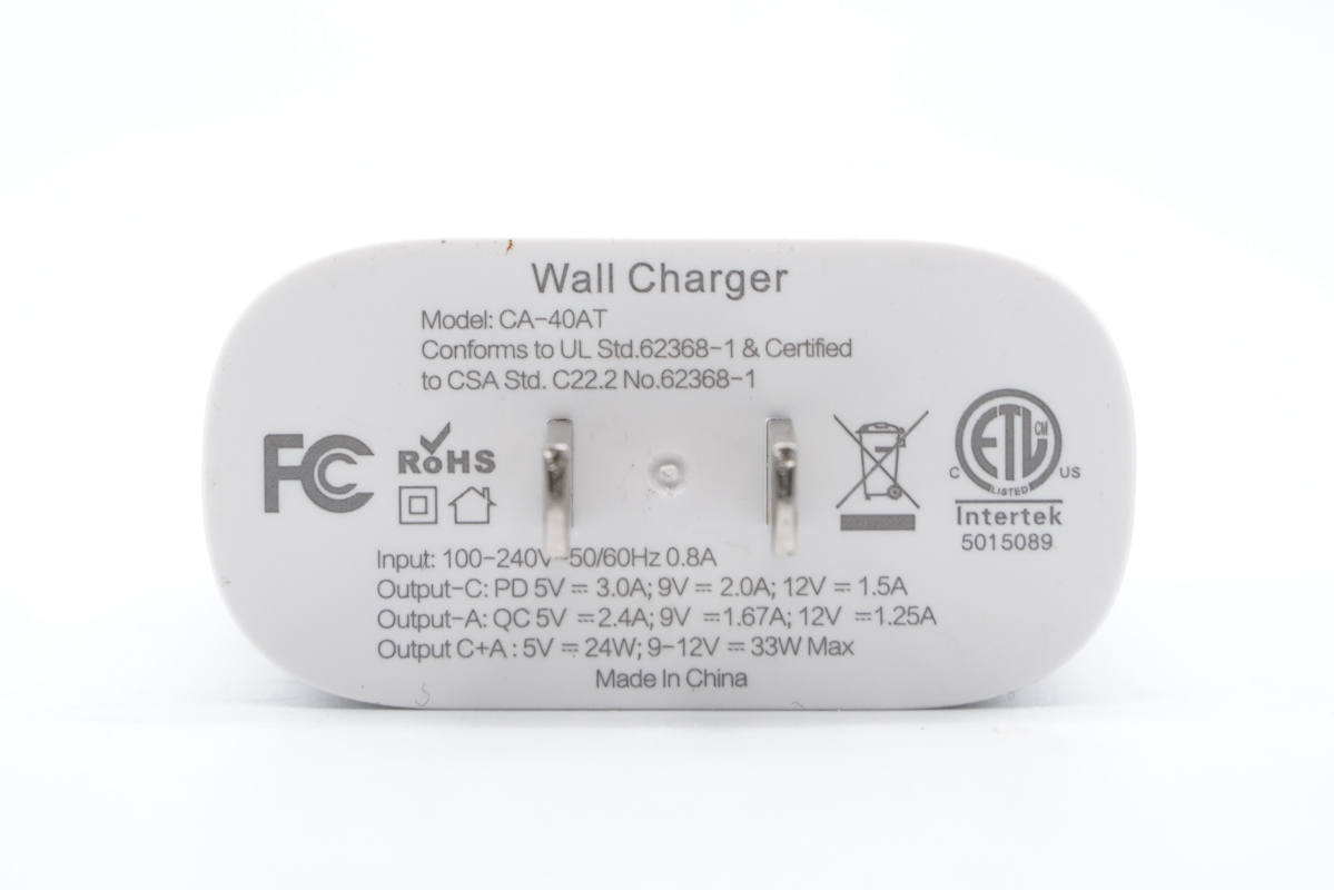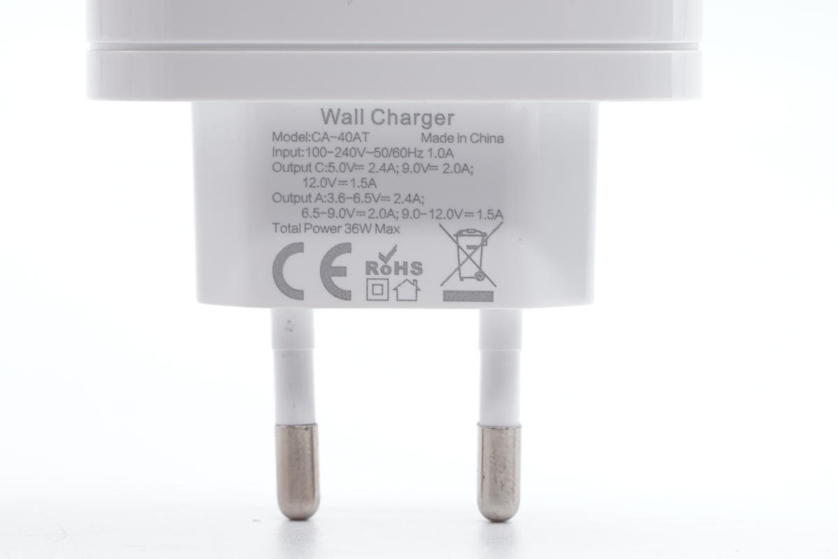 深圳市迪品乐科技有限公司最近推出了一款36W快充充电器CA-40AT,配备的是1A1C双输出接口,单接口最大输出功率18W。这款充电器可配备美规、欧规和英规固定插脚,并通过了对应地区的安规认证。下面充电头网就对这款充电器进行详细拆解,看看产品用料做工如何。