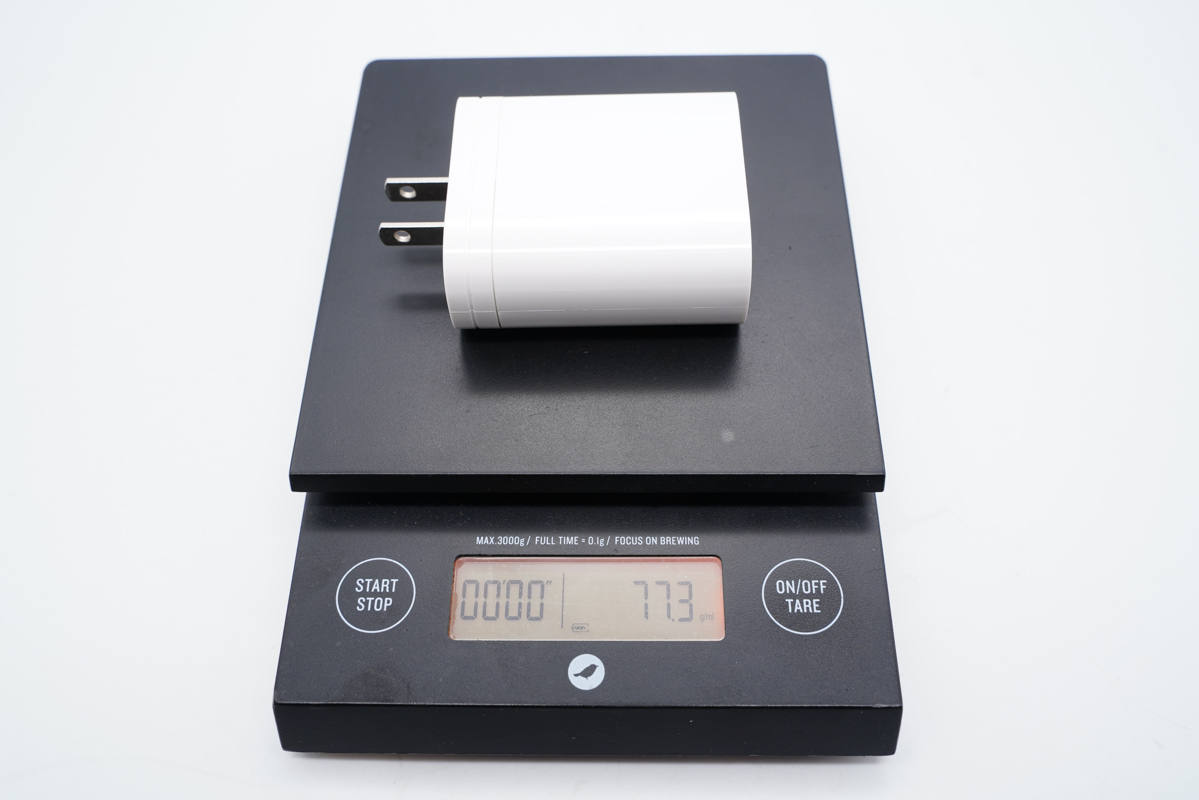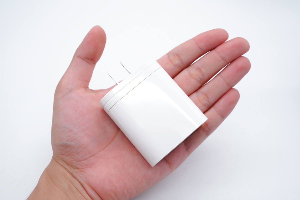 充电器采用PC材质白色外壳,腰身亮面,两侧为弧面,整体十分简洁。