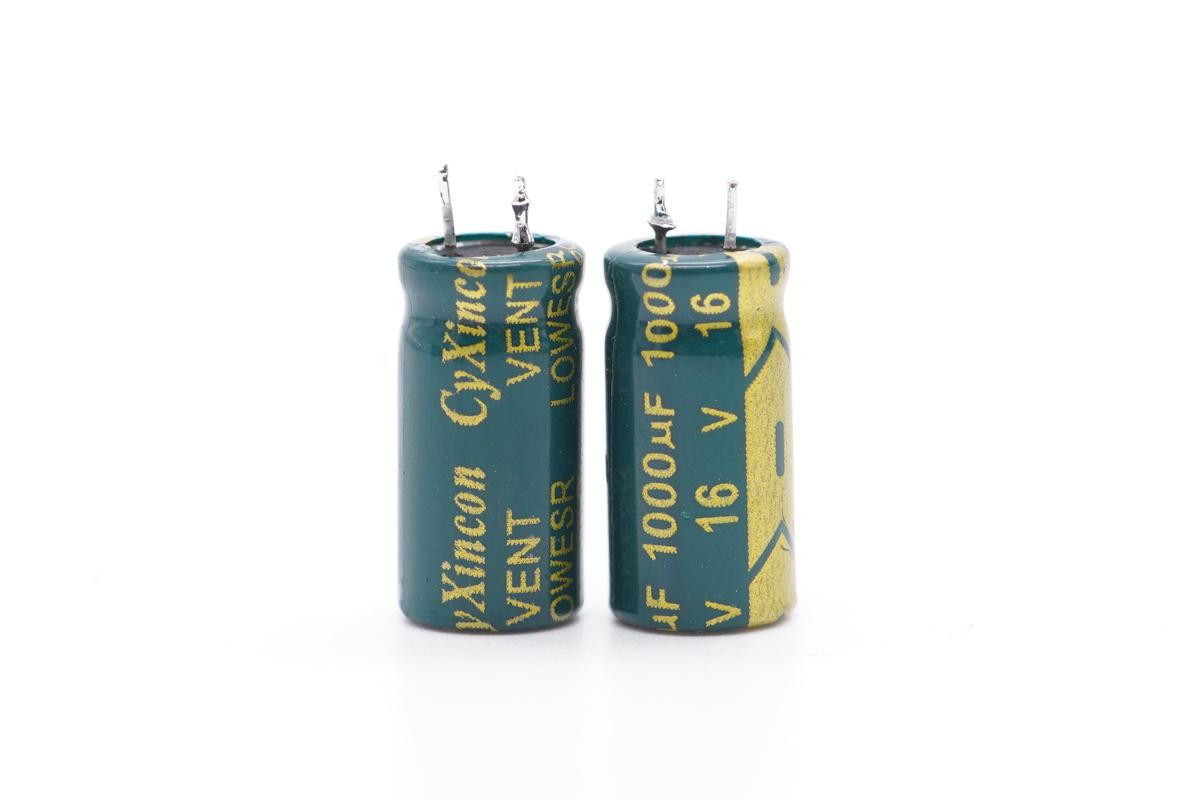 两颗较大的电解电容用于同步整流输出滤波,规格均为16V 1000μF,也是CyXincon品牌。