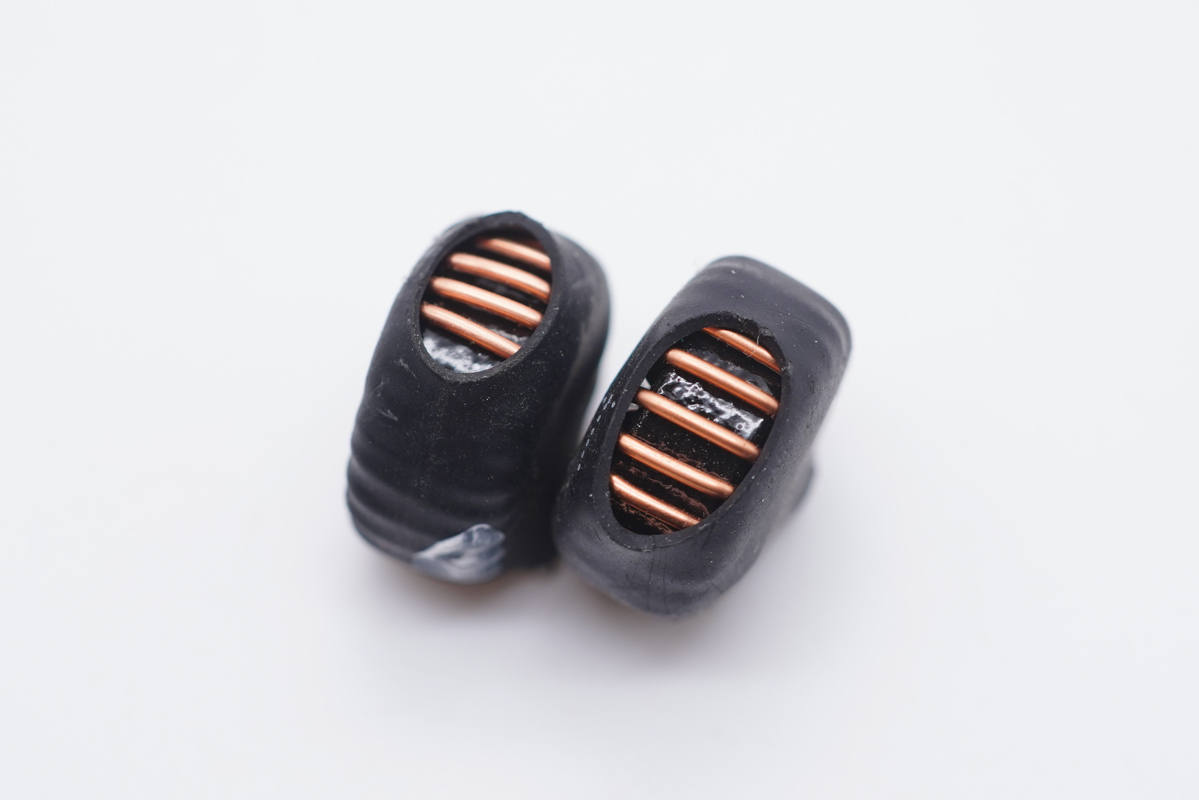 英集芯两颗降压协议IC各搭配一颗降压电感,均外套绝缘管保护。
