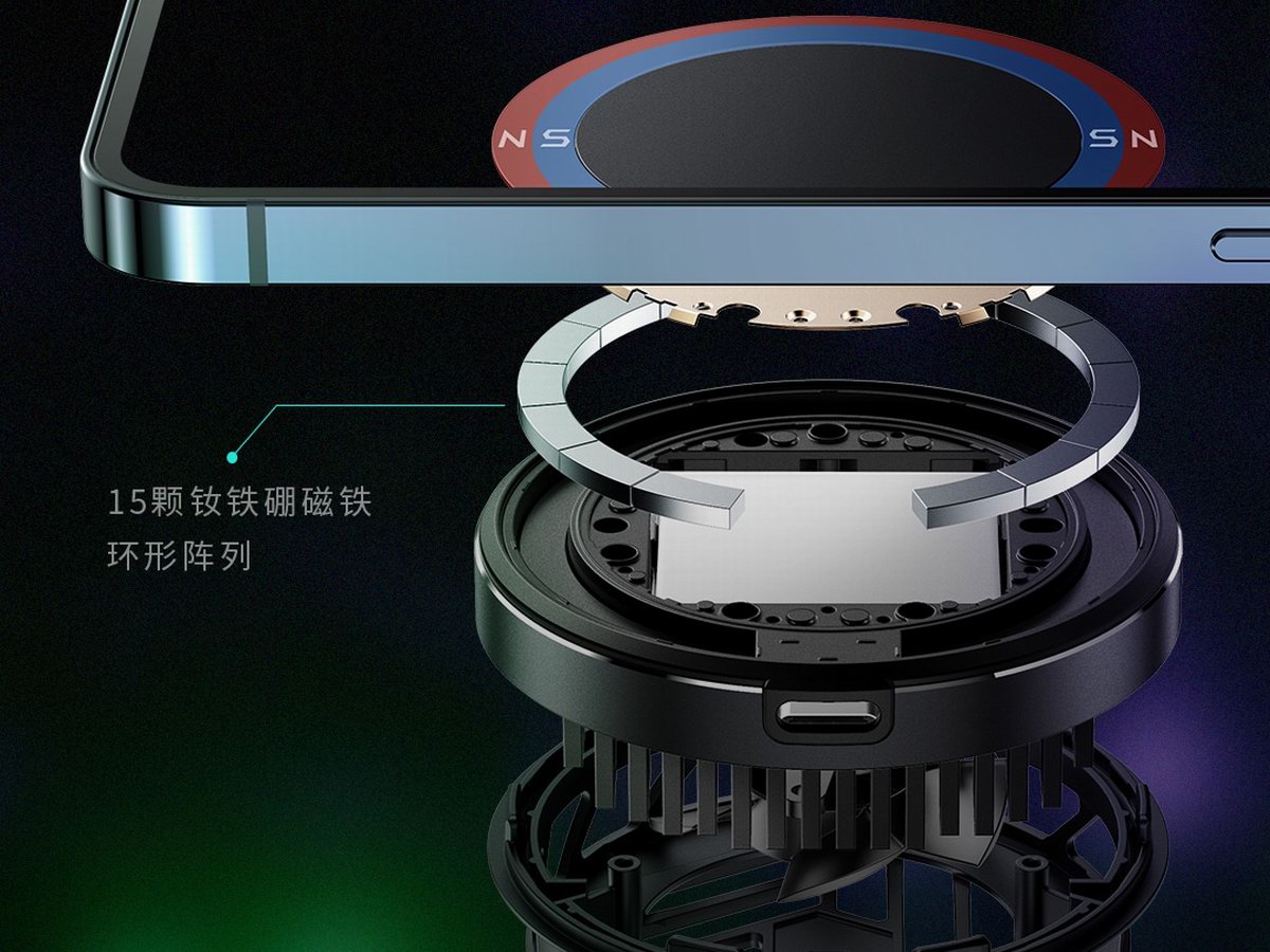 iPhone 12全系列均搭载MagSafe磁力部件,黑鲨冰封制冷背夹2磁吸版底部设置了15颗钕铁硼强磁铁,产生的强大吸力让它牢固吸附在电子设备上,与iPhone 12磁吸部件尺寸吻合,靠近自动对准并牢固吸附。