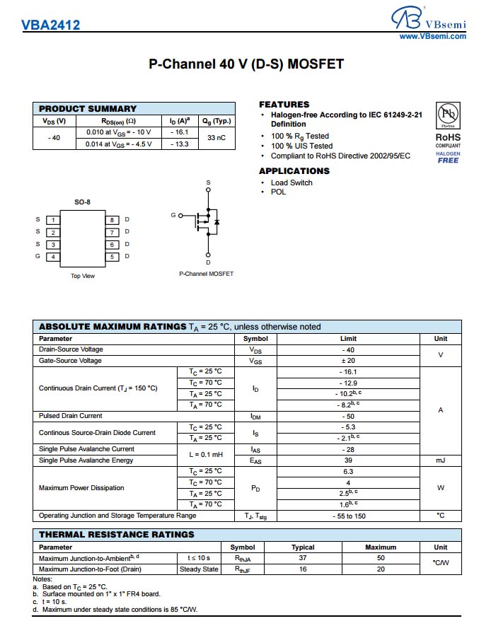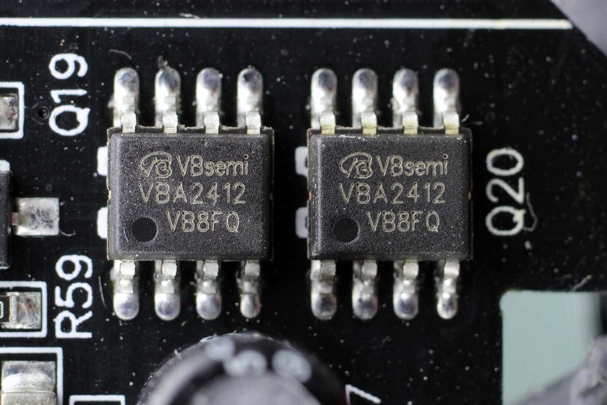 两颗微碧半导体VBA2412 MOS管,PMOS管,耐压40V,SO-8封装。