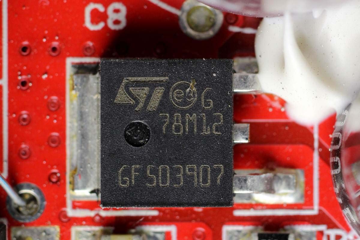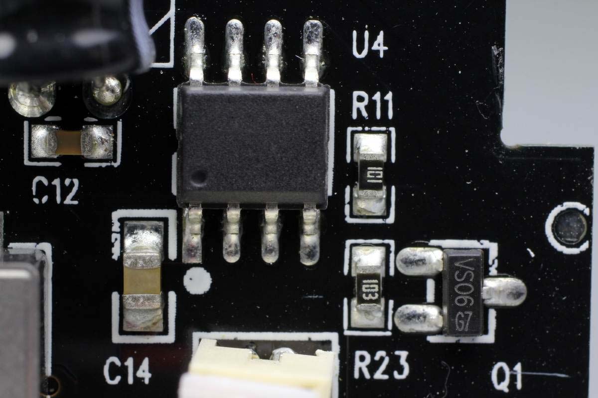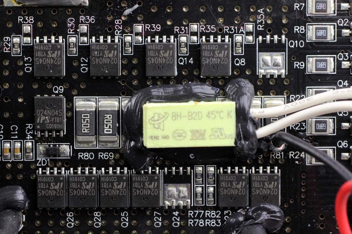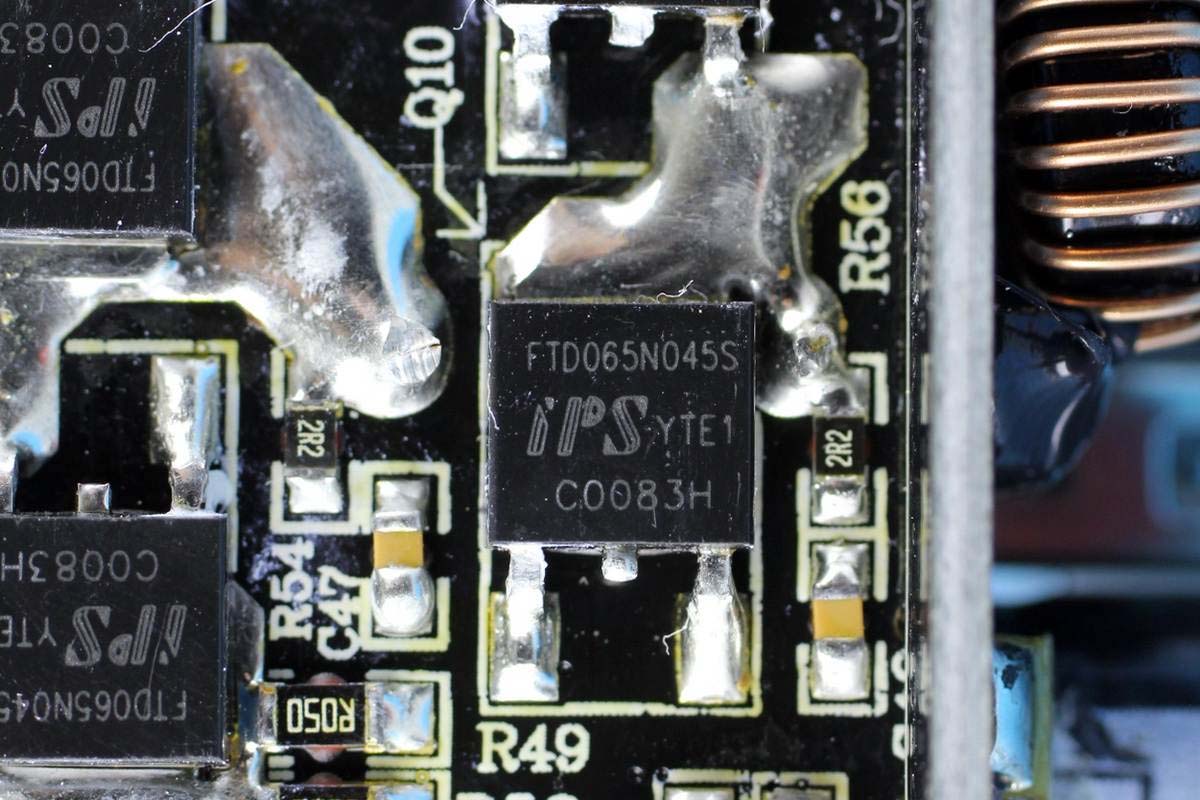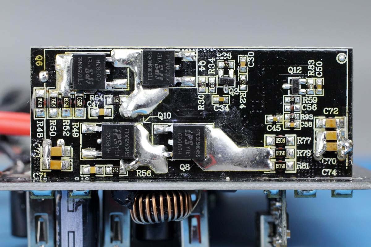这区域一共有11颗IPS华润芯FTG024N04S MOS管,电流取样电阻上用导热胶固定了一个温度探头,45℃,用于过热保护。