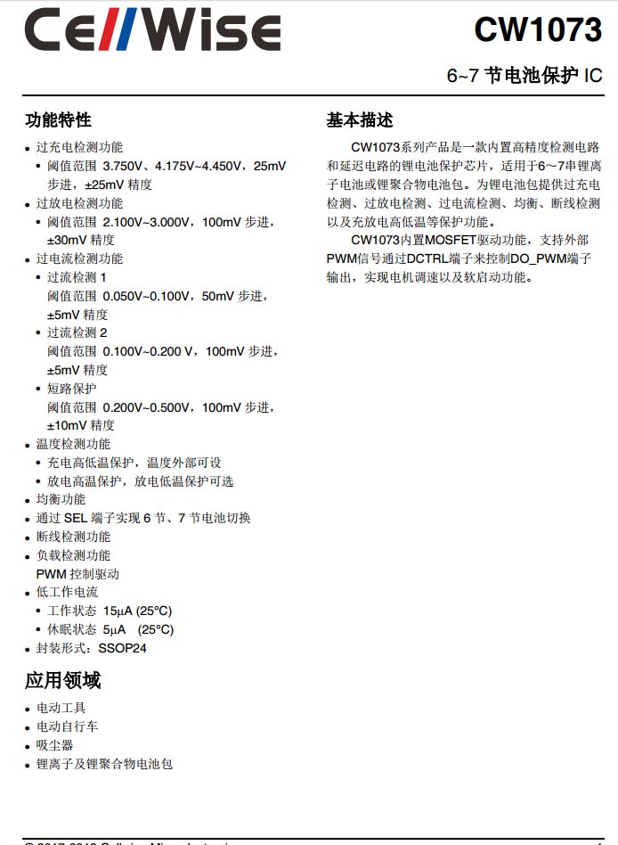 锂电保护芯片采用赛微CW1073,用于6串电池保护及均衡功能,均衡电路为外置。
