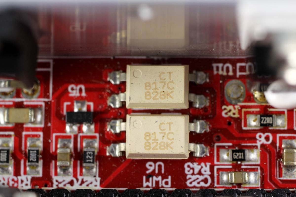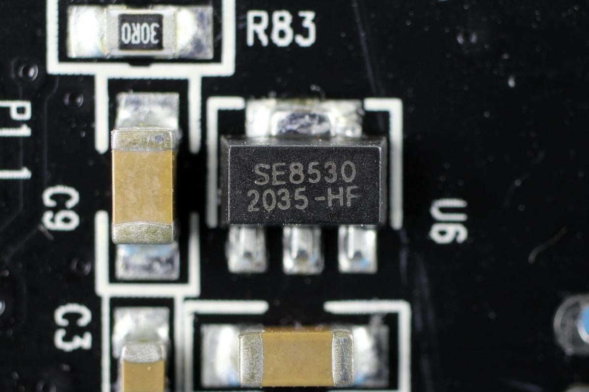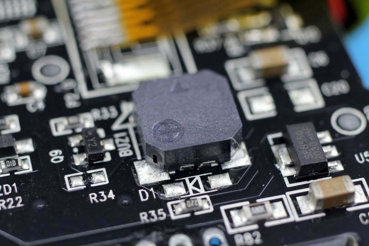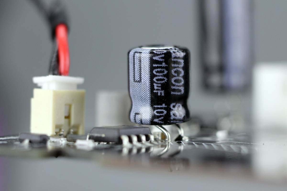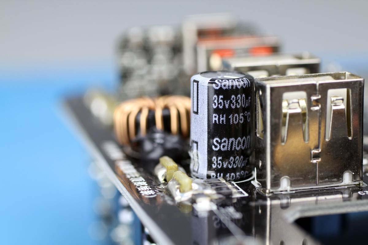 背面设有对应的滤波电容,规格为35V 330μF,三颗并联。
