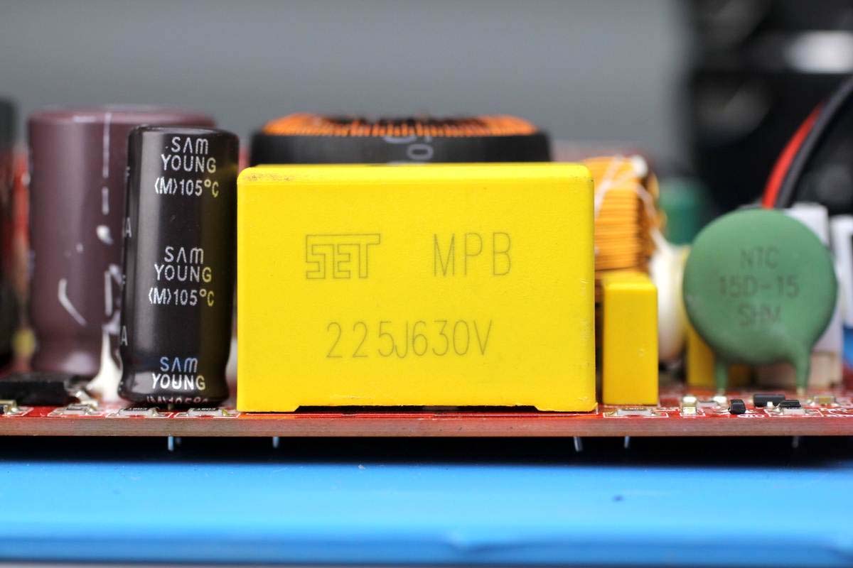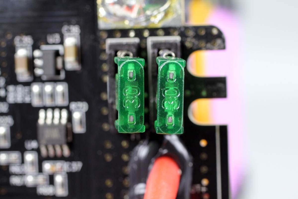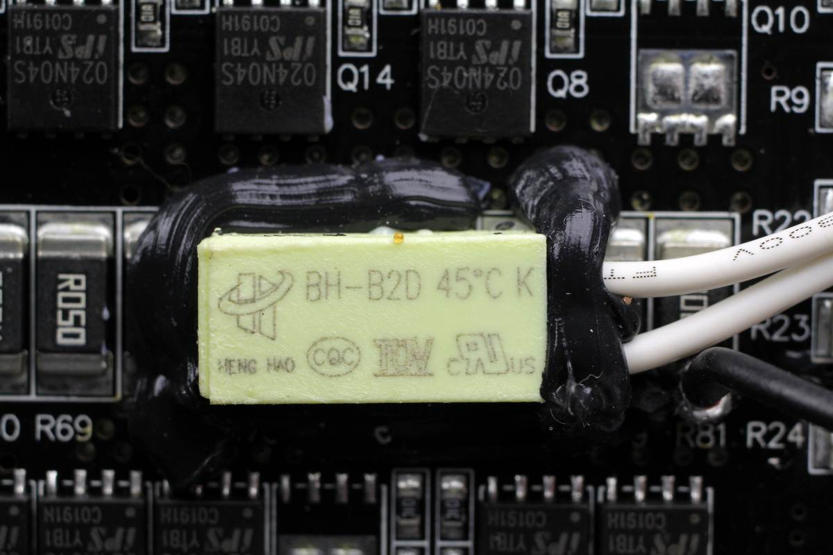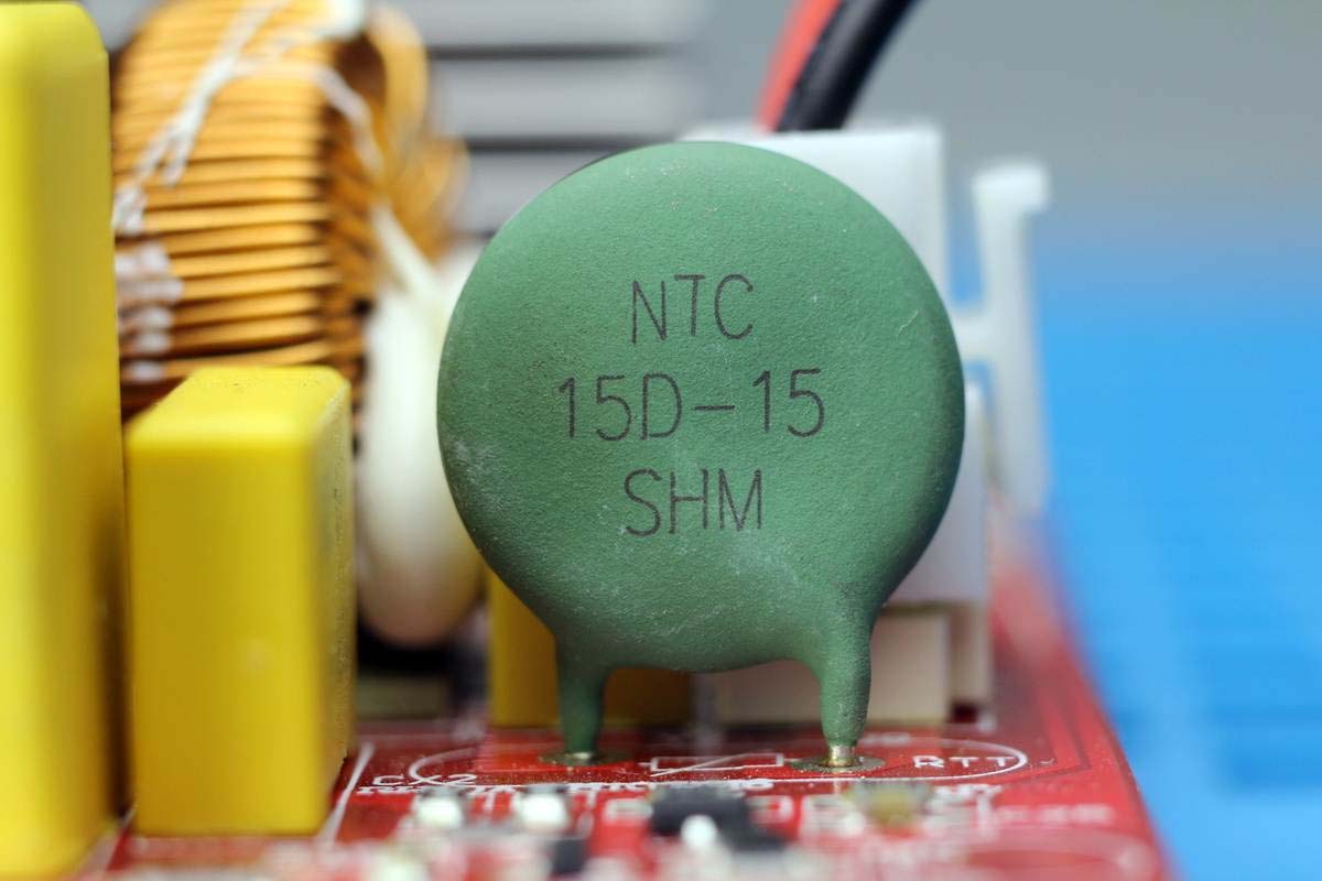 NTC浪涌抑制电阻特写,后面便是风扇插槽。