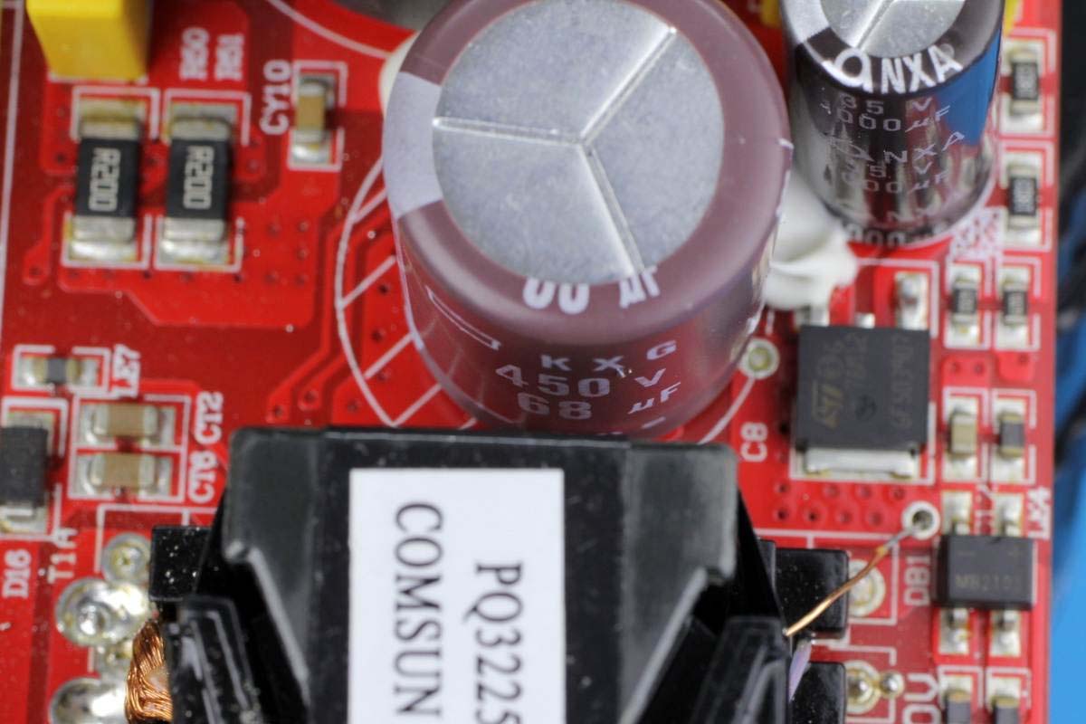 输出滤波电解电容采用日本黑金刚KXG系列,规格为450V 68μF。