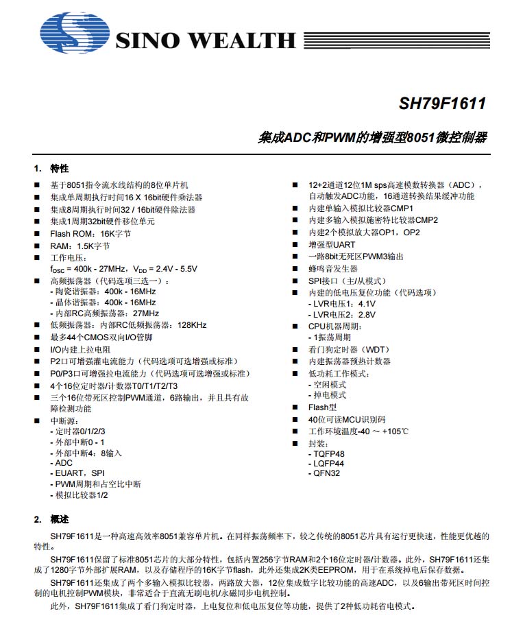 中颖SH79F1611,用于输出PWM调制波形,调制输出波形。