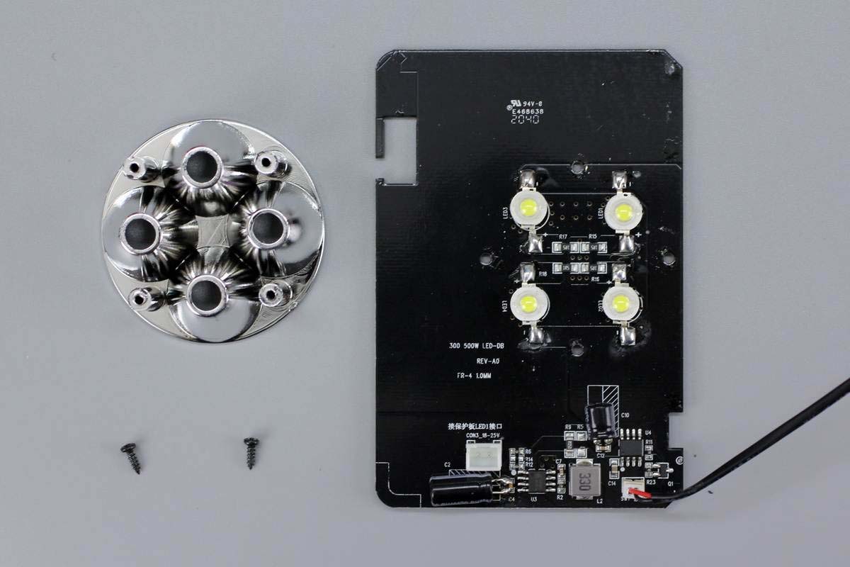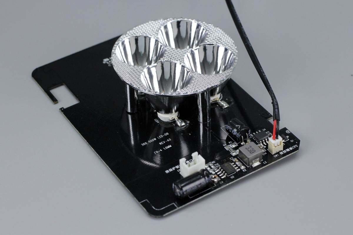 照明灯所在小板采用导线插拔式连接通电,板子单面焊接元器件。