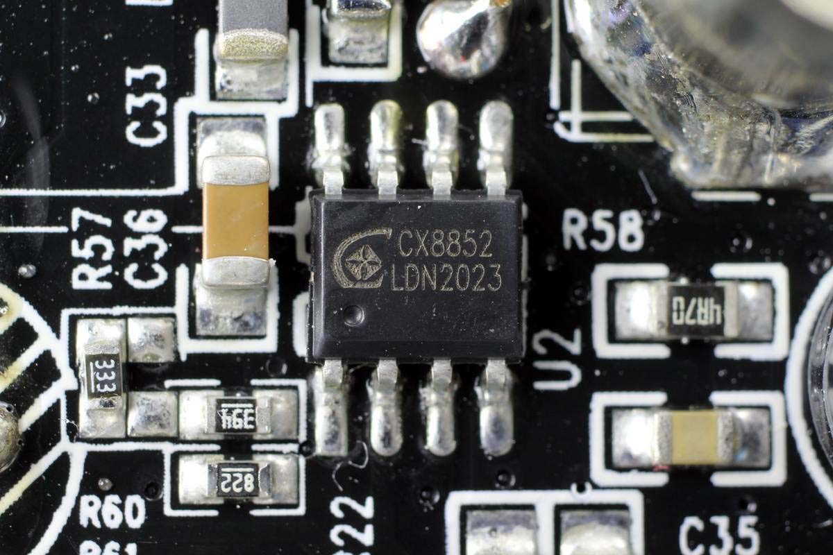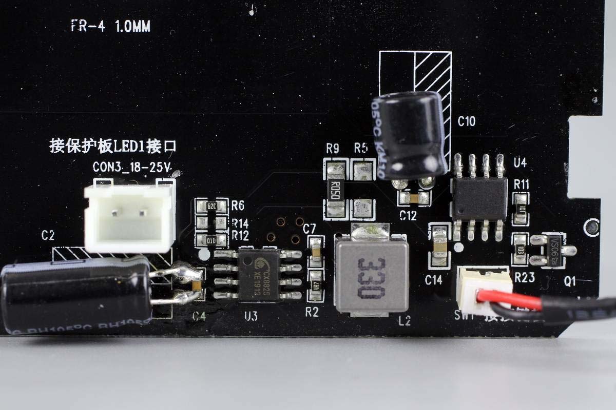 外挂MOS管是IPS华润芯的065N045S,四颗组成H桥,配合诚芯微CX8838进行升降压。