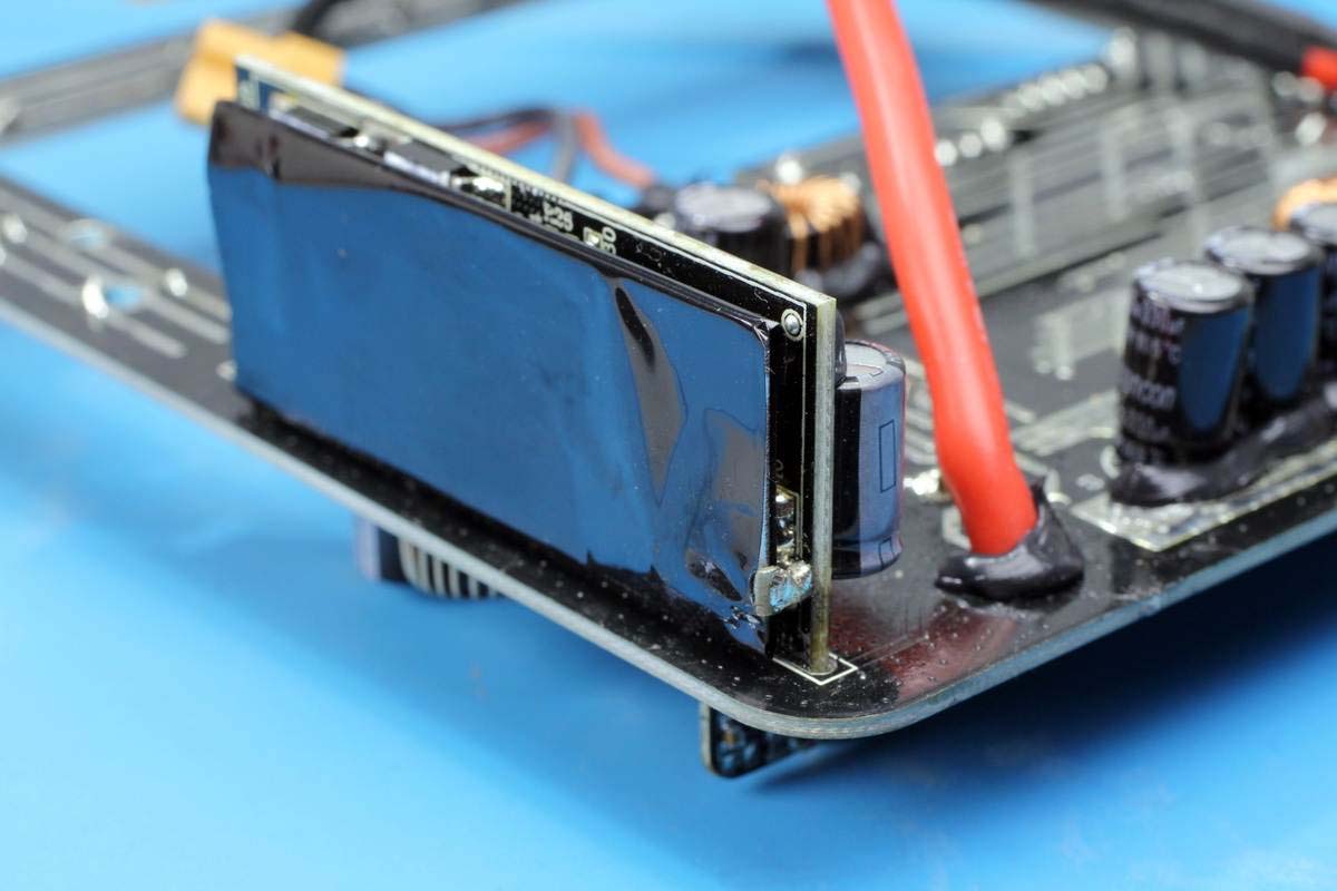 中间的温度探头打胶固定在电流取样电阻上,检测温升。