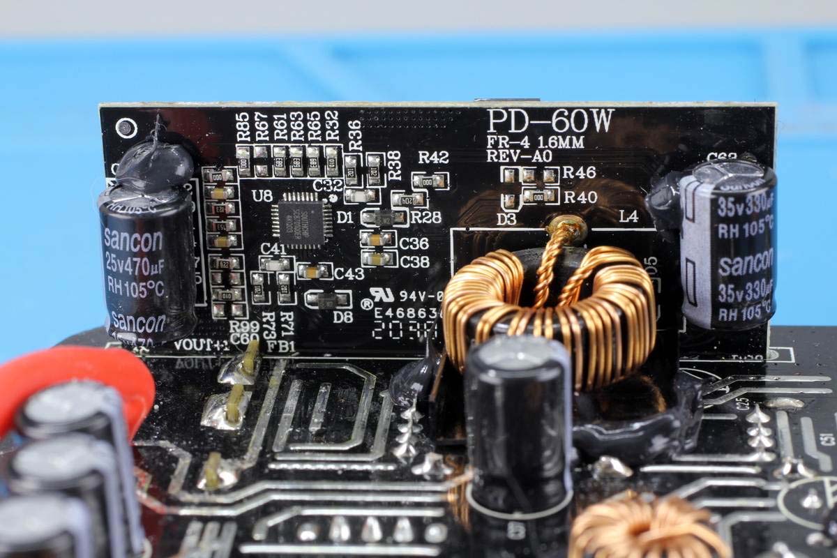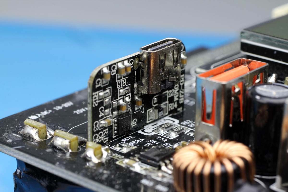 USB-C母座使用小板垂直焊接,小板背面设有协议芯片。