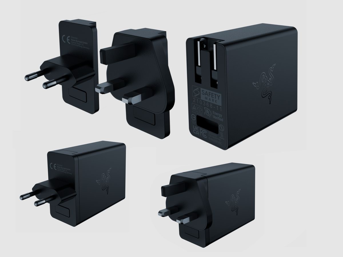 为方便跨地区旅客使用,雷蛇130W氮化镓充电器采用了两脚可折叠插脚设计,并且支持外接替换插脚,从原本美规插脚变成欧规、英规插脚,以适应不同地区电网插孔。