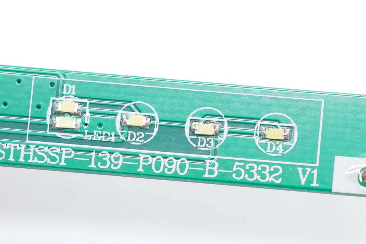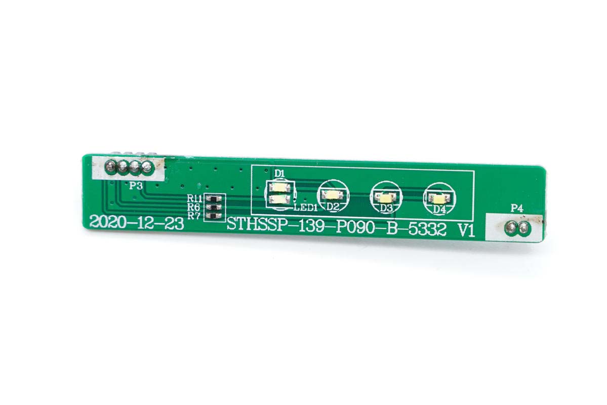 LED指示灯特写,最左侧的电量指示灯和快充指示灯共享一个位置。