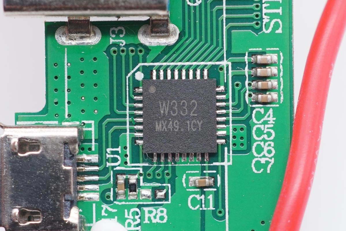 移动电源主控丝印W332,是英集芯的IP5332多合一SOC芯片,这款芯片可同时支持多个USB口,并且均支持多种快充协议,集成双向PD功能,且支持多种电压电池,涵盖市面上所有锂电池,最大充电电流5A,最大支持18W输出,同时内置电量计功能,内置功率管,外围元件数量少,最大简化设计节省成本,芯片支持锂电池NTC温度检测,确保使用安全。