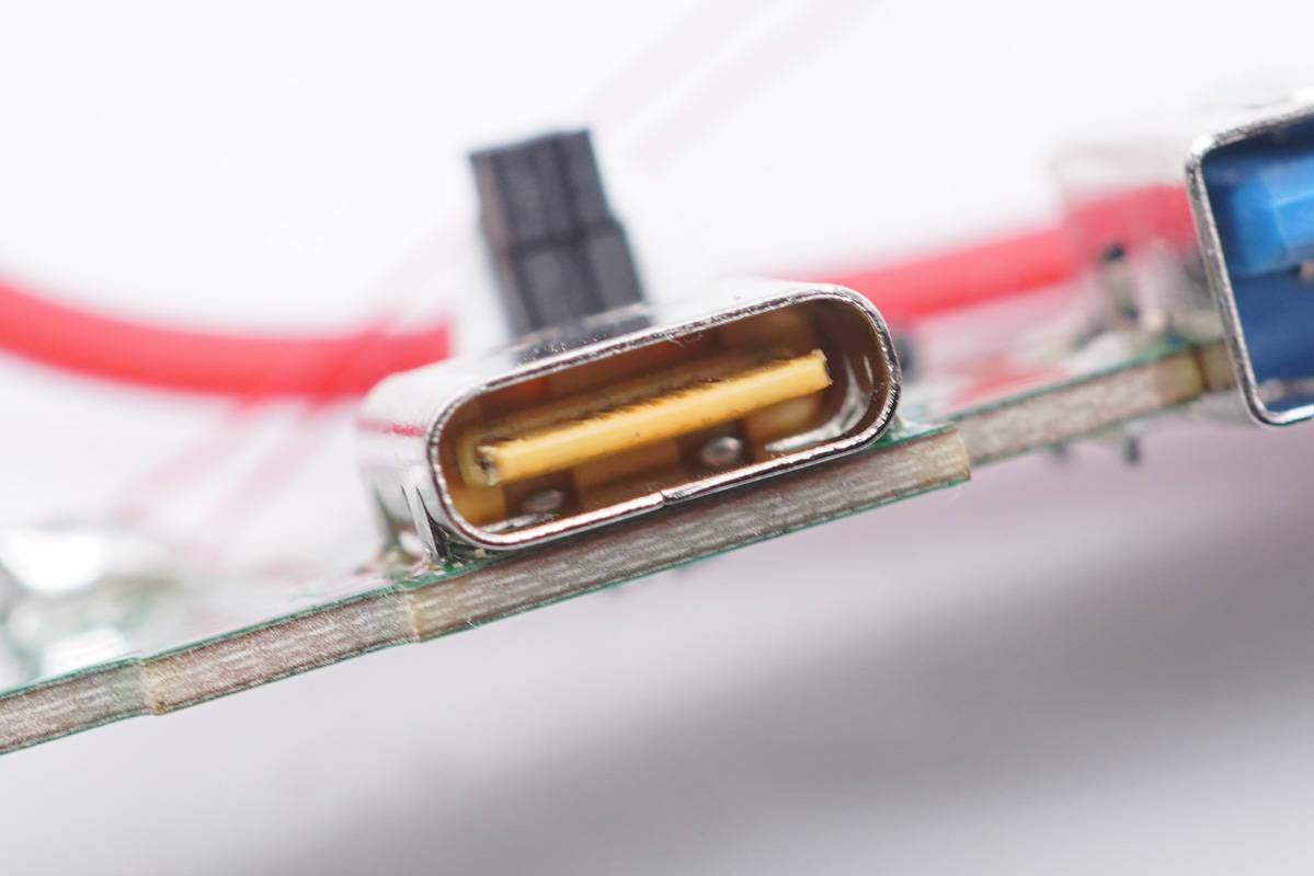 主板背面,电感打胶加固,USB-A母座沉板焊接。