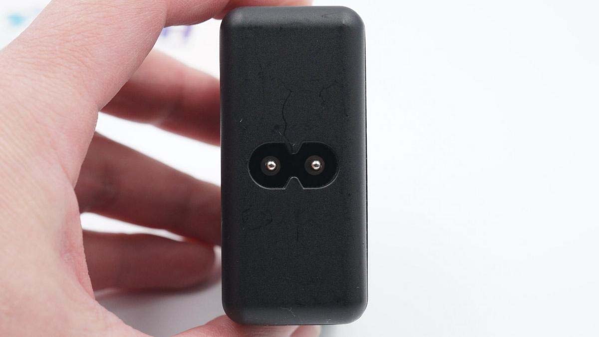 赛尔康这款充电器采用扁平方块造型设计,机身表面哑光,边角过渡圆润。
