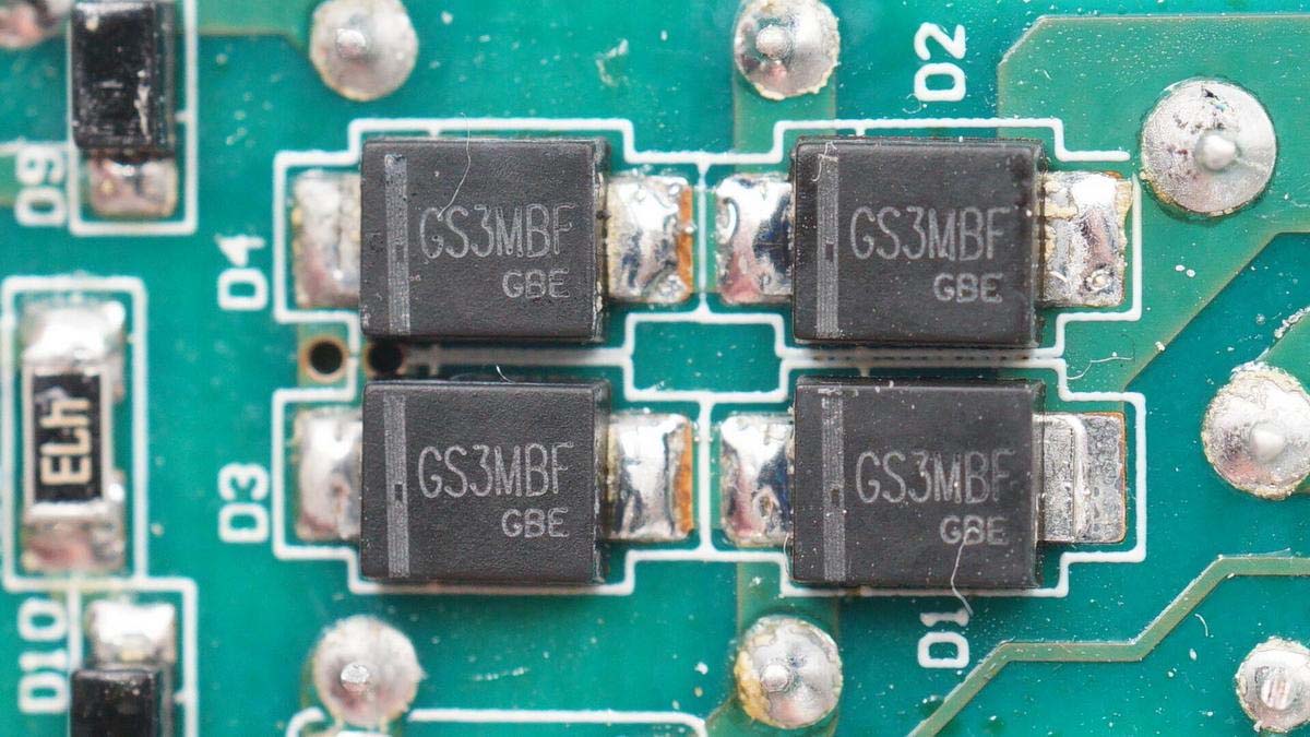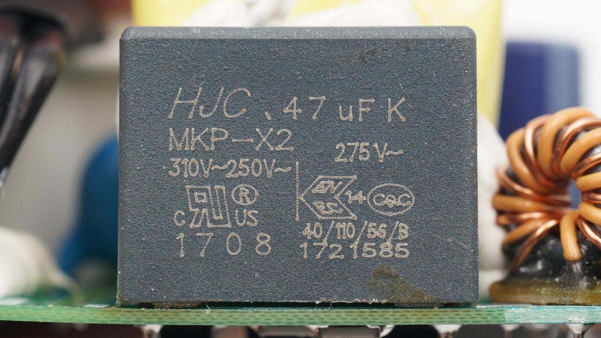 5颗高压滤波电解电容均来自艾华,规格都是400V 22μF。主控芯片供电电容来自绿宝石,规格为100V 10μF。