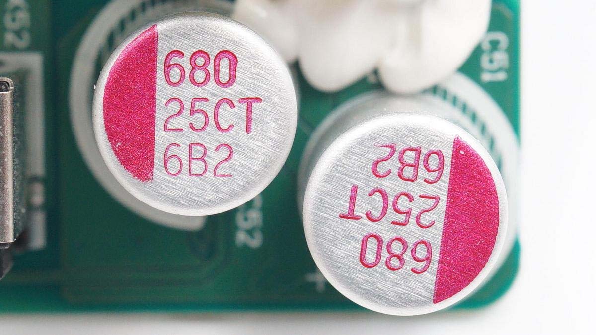 输出滤波固态电容特写,两颗规格均为25V 680μF。