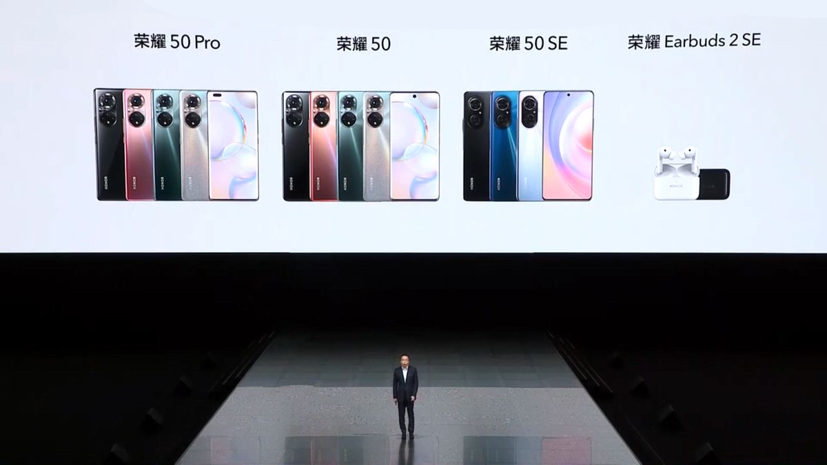 本次发布会将带来荣耀50系列三款手机,分别是中杯荣耀50、大杯荣耀50 Pro、性价比机型荣耀50 SE,另外还有荣耀Earbuds 2 SE降噪耳机。