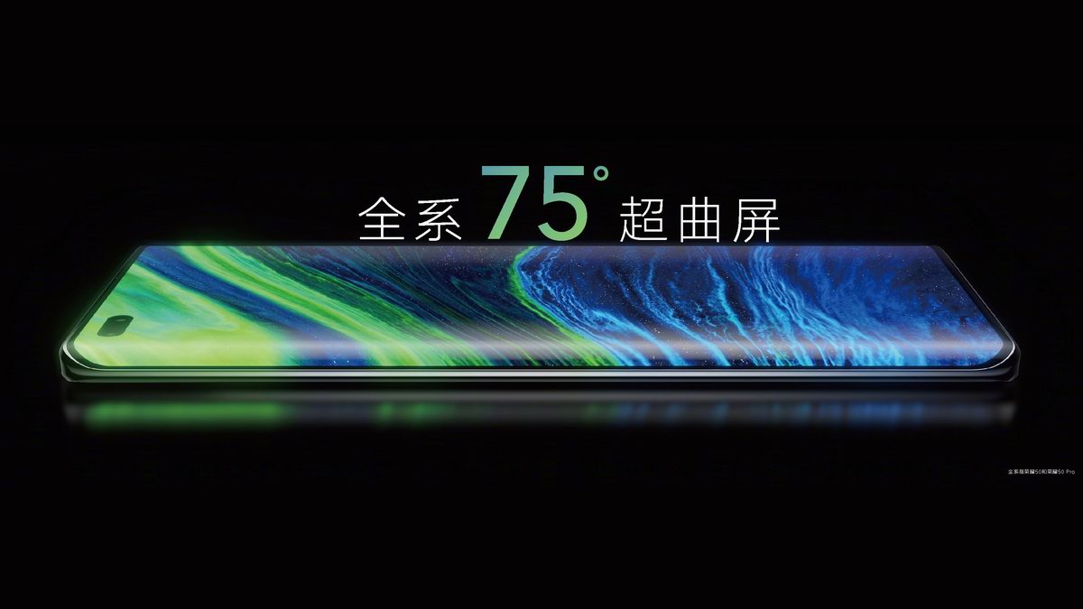 荣耀50全系采用75度超曲面屏,带来瀑布般的流动观感,10.7亿色显示,120Hz刷新率,300Hz触控采样率,1.31mm超窄边框,并采用隐藏式听筒,整个面板浑然一体。荣耀50 Pro屏幕分辨率为2676*1236,6.72英寸左上挖孔双前摄,荣耀50分辨率为2340*1080,6.57英寸中置挖孔前摄。