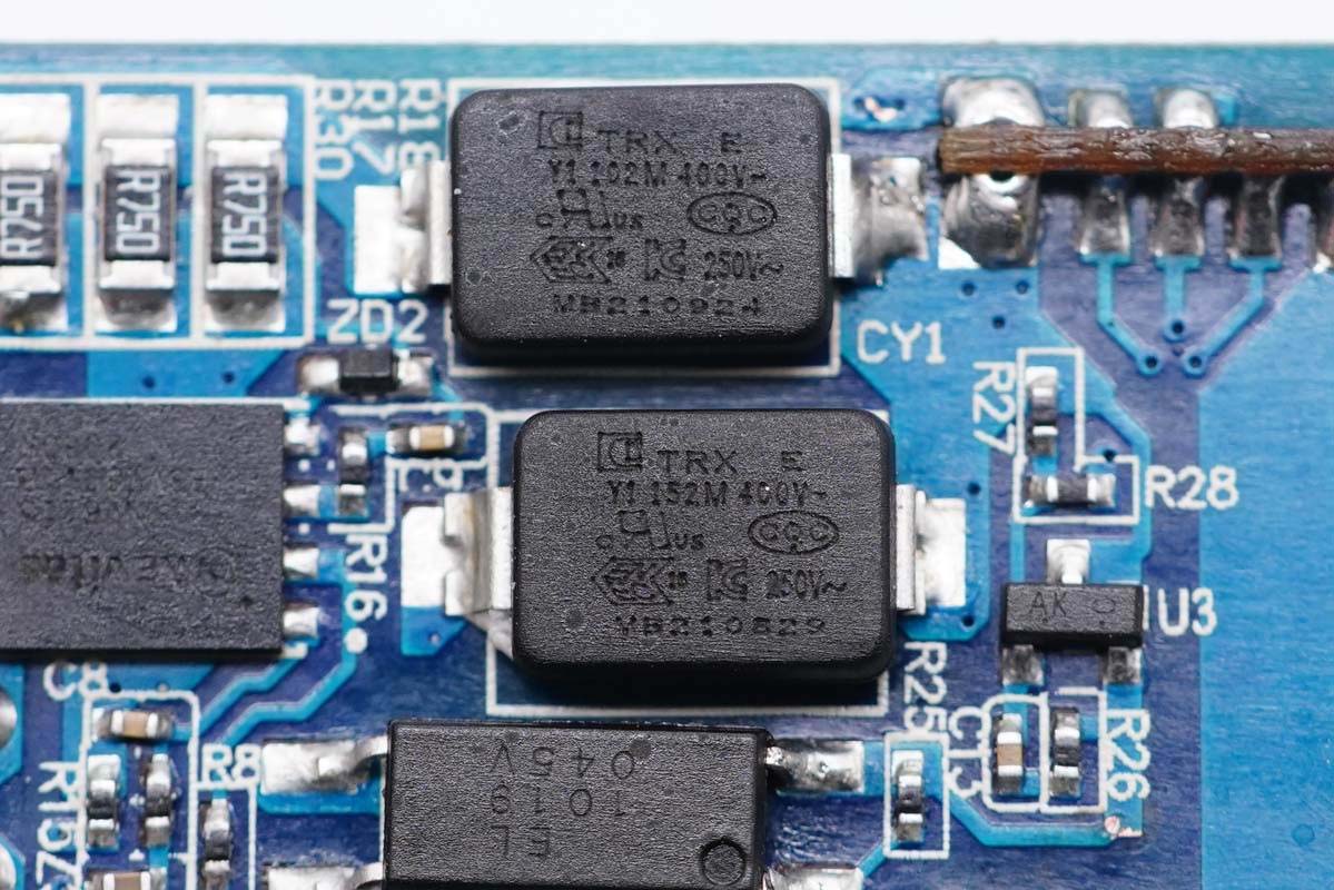 两颗贴片Y电容来自四川特锐祥科技股份有限公司,具有体积小、重量轻等特色,非常适合应用于氮化镓快充和小体积高密度电源产品中。