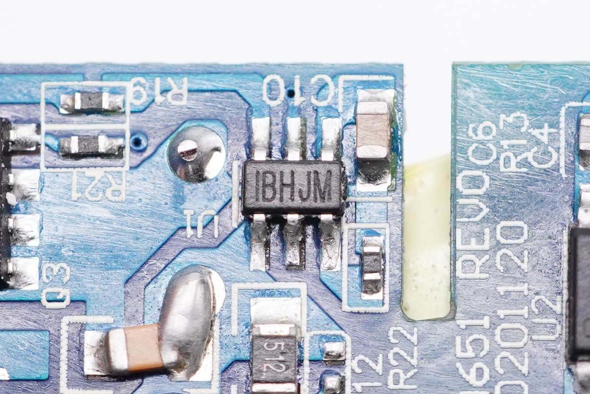 丝印IBHJM次级同步整流控制器,实际型号为MP6908A,来自MPS芯源半导体,最高工作频率600KHz,支持DCM,CCM和QR以及ACF工作模式,支持标准电压和逻辑电压驱动的同步整流管。