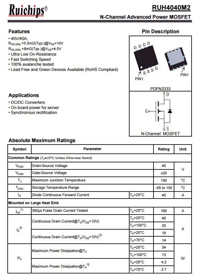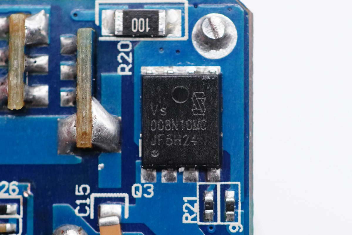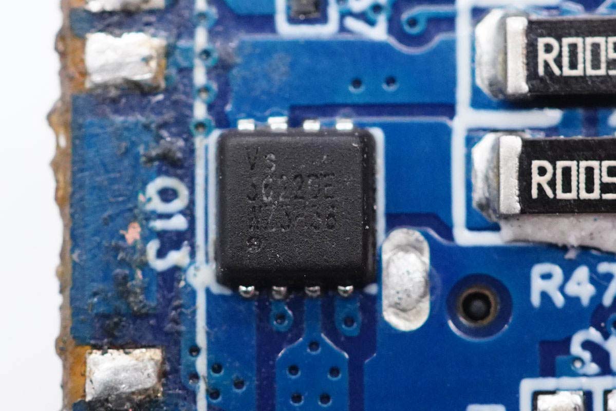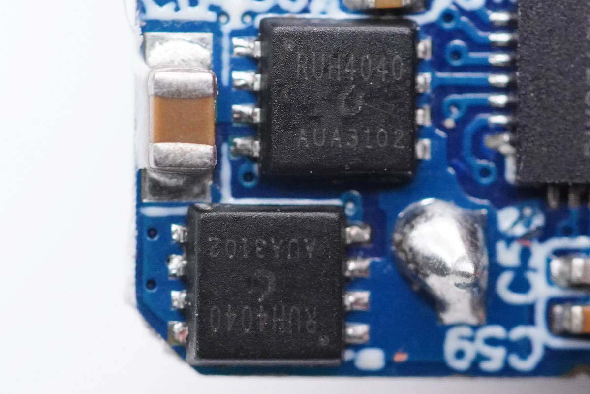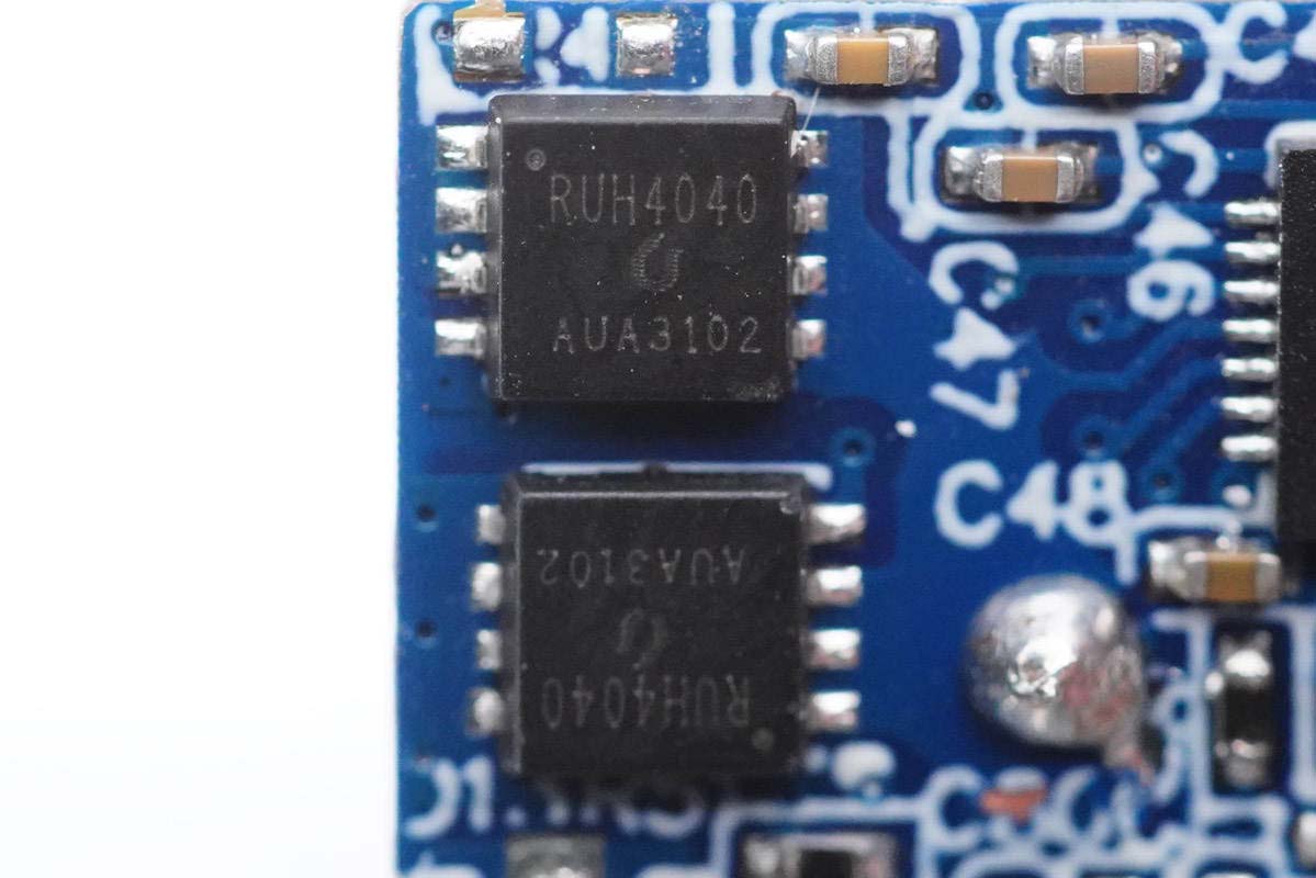 两颗SW3516H均外挂两颗MOS管,用于为USB口输出同步整流降压。MOS管为锐骏半导体的RUH4040M2,耐压40V。