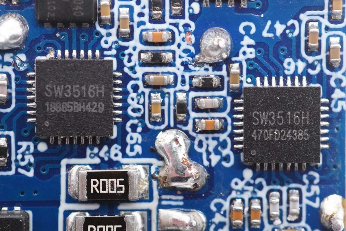C1口和另外1A1C口的二次降压电路主控芯片均采用智融SW3516H,用于进行降压控制和协议识别。智融SW3516H是一款高集成度的多快充协议双口充电芯片,支持A+C口任意口快充输出,支持双口独立限流。