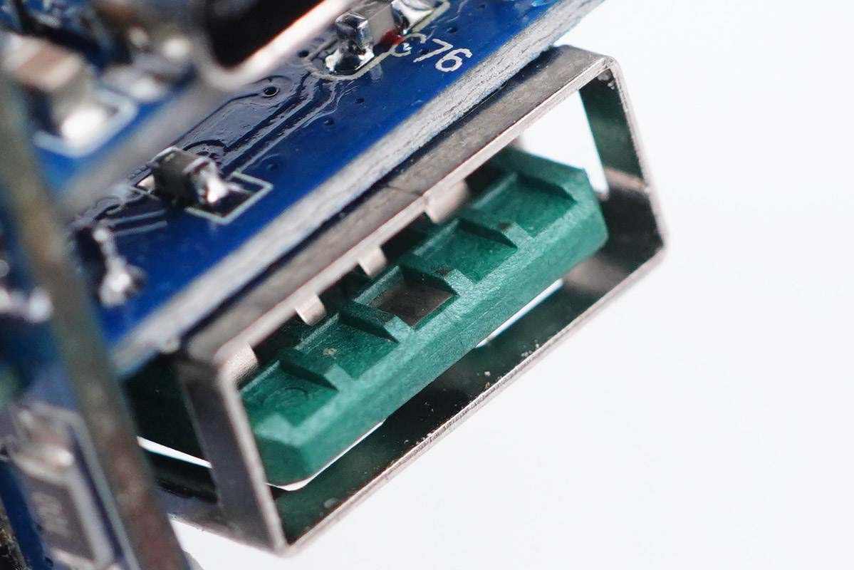 输出端三个USB母座均使用小板垂直焊接,充分利用内部空间。