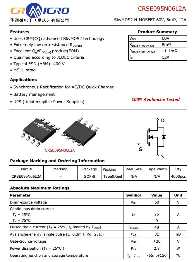 华润微CRSE095N06L2A资料信息。