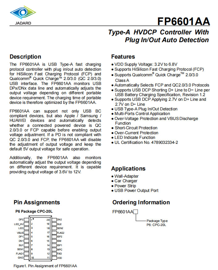 天德钰 FP6601AA详细规格资料。