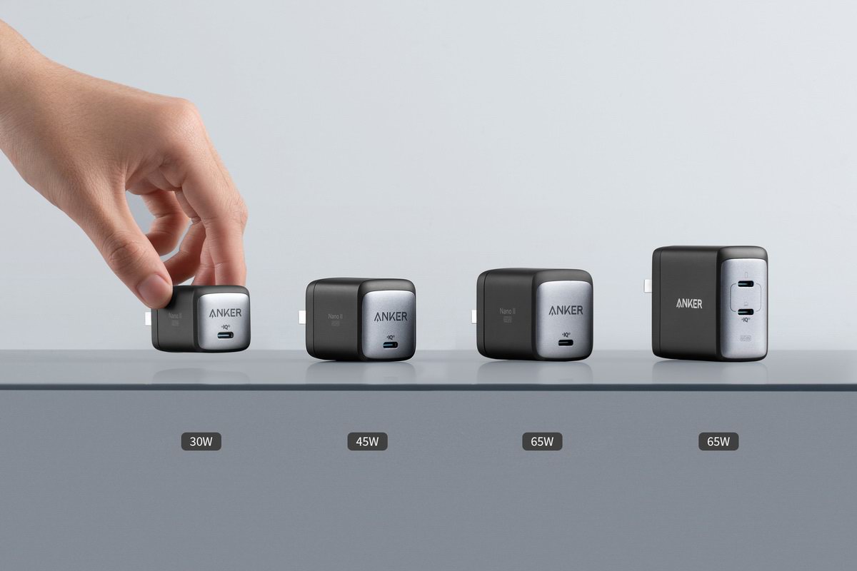 Anker的氮化镓第二代超能充系列充电器一共有30W、45W、65W、65W双口四款产品,采用美国PI氮化镓芯片制作,内部结构将平面堆叠提升至立体堆叠,相比起第一代氮化镓产品更小功率更大。 其中30W、45W、65W这三款单口超能充已先后上市开售,65W双口超能充作为唯一双口产品,近日终于上架开售。