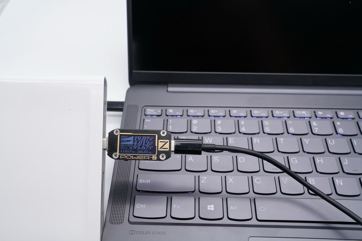 市面上主流笔记本都支持USB PD快充,大部分充电功率在65W左右,性能本功率可达100W,瑞嘉达100W桌面快充充电器强大的输出能力,让高性能PD笔记本可以跑满充电极限,实测对笔记本充电功率高达95.67W,接近跑满上限。
