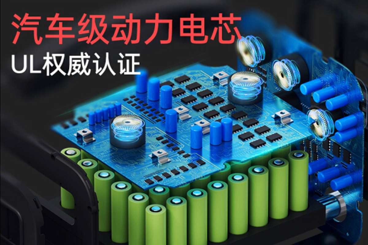 户外电源最关键的核心部件就是储能电池,羽博 EN1000S 内部电芯来自汽车级动力电芯,采用了 48 颗车规级三元锂电芯组成电池组,拥有强大的充放性能,相比起普通电芯循环寿命更长,并通过了UL认证,安全性更有保障。