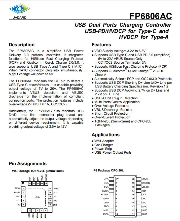 充电头网拆解了解到,天德钰FP6606AC已被航嘉18W 1A1C快充延长线插座、RAVPOWER 18W 1A1C充电器、飞利浦1A1C 18W PD快充充电器、睿高18W超薄折叠PD快充充电器、优胜仕18W 1A1C快充充电器等数十款产品采用过。