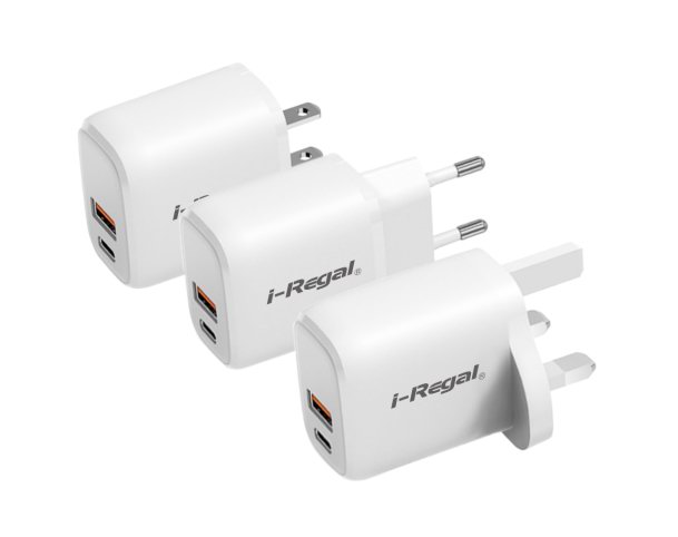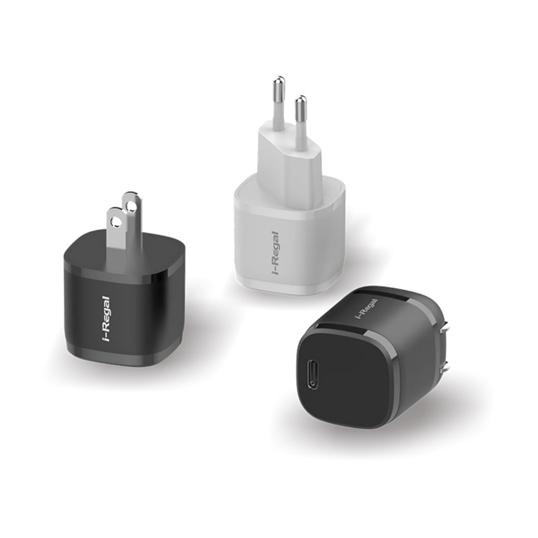 IGR-UW13CS 1A1C双输出口配置,插脚可做中规,美规,欧规,英规,韩规,澳规,印度规,支持100-240V 50/60Hz 0.6A全球电压,USB-C支持5V3A / 9V2.22A / 12V1.67A三挡固定电压输出,输出功率20W;USB-A支持5V3A / 9V2A / 12V1.5A三挡固定电压输出,输出功率18W,全局最大输出功率20W。目前此产品可按CE、FCC、 3C、KC等认证标准做货。