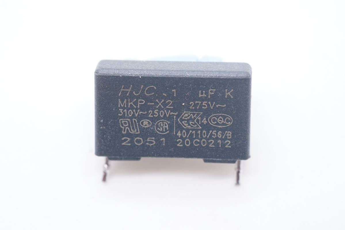 另一颗安规X电容特写,也是来自华容,容量0.1μF。