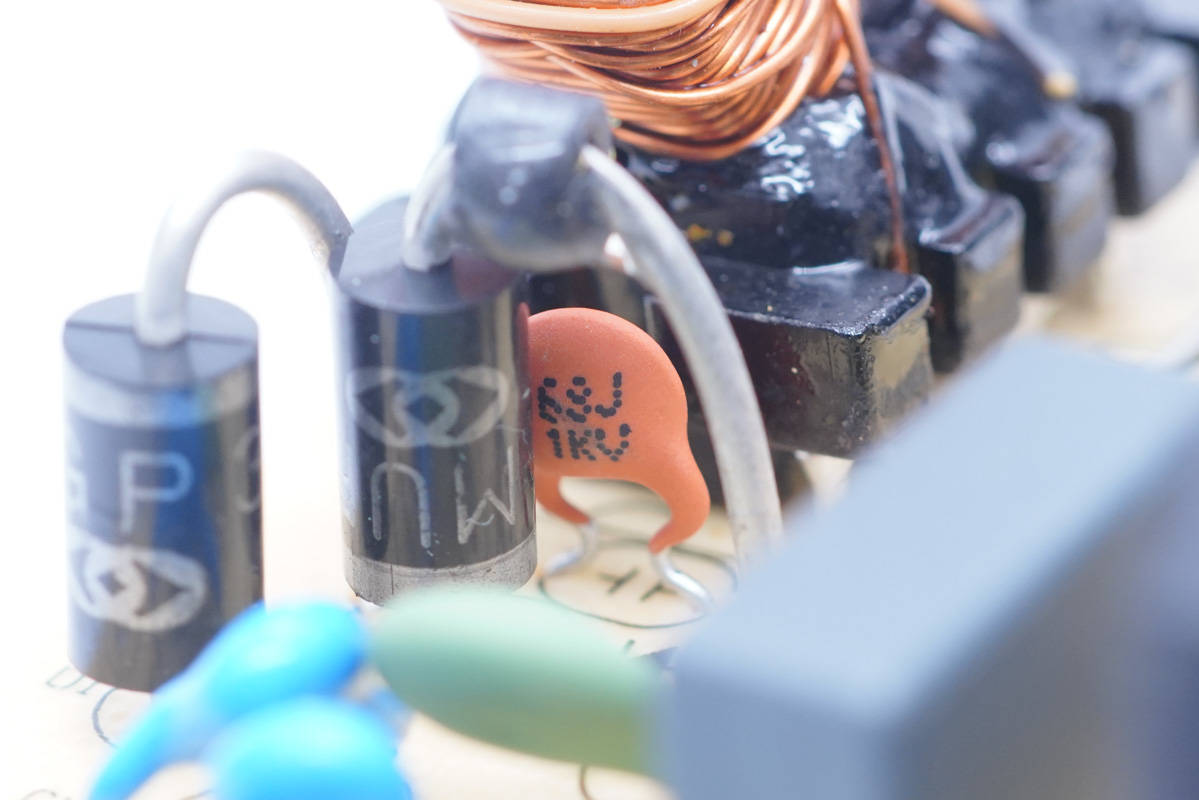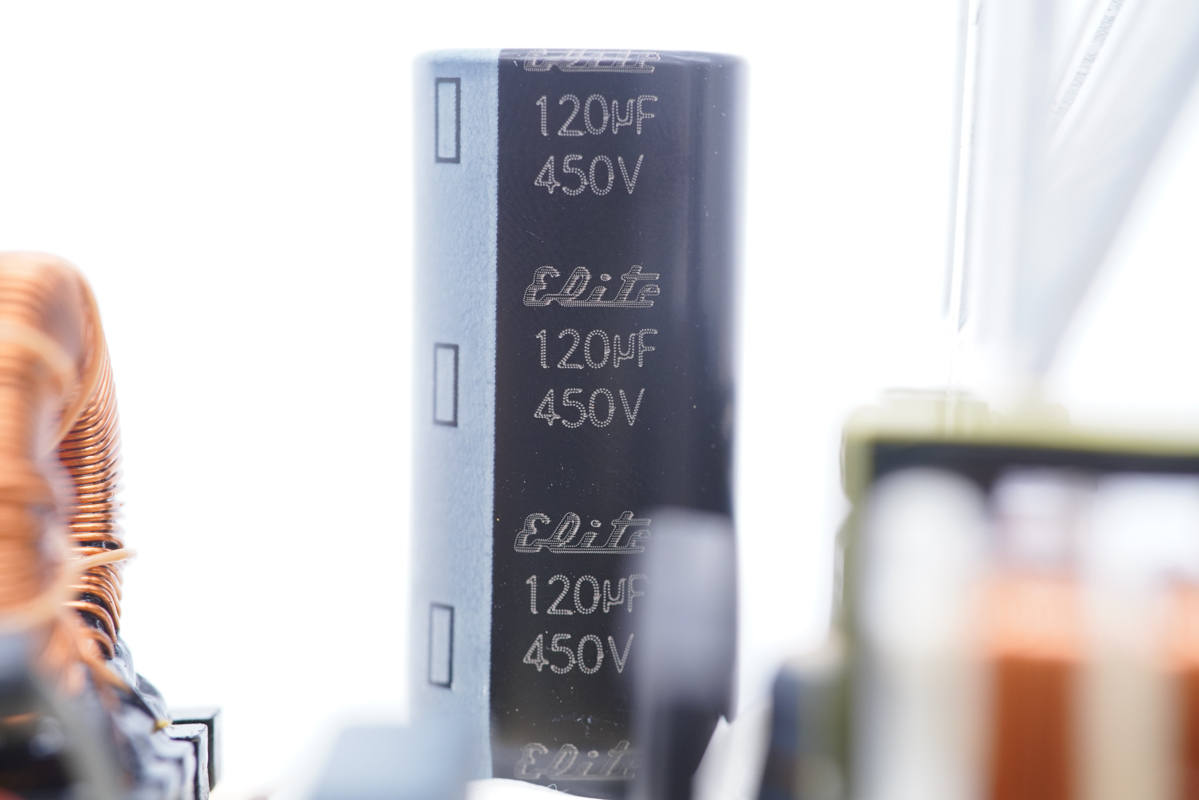 高压滤波电解电容来自金山,规格为450V 120μF,底部打胶水固定。