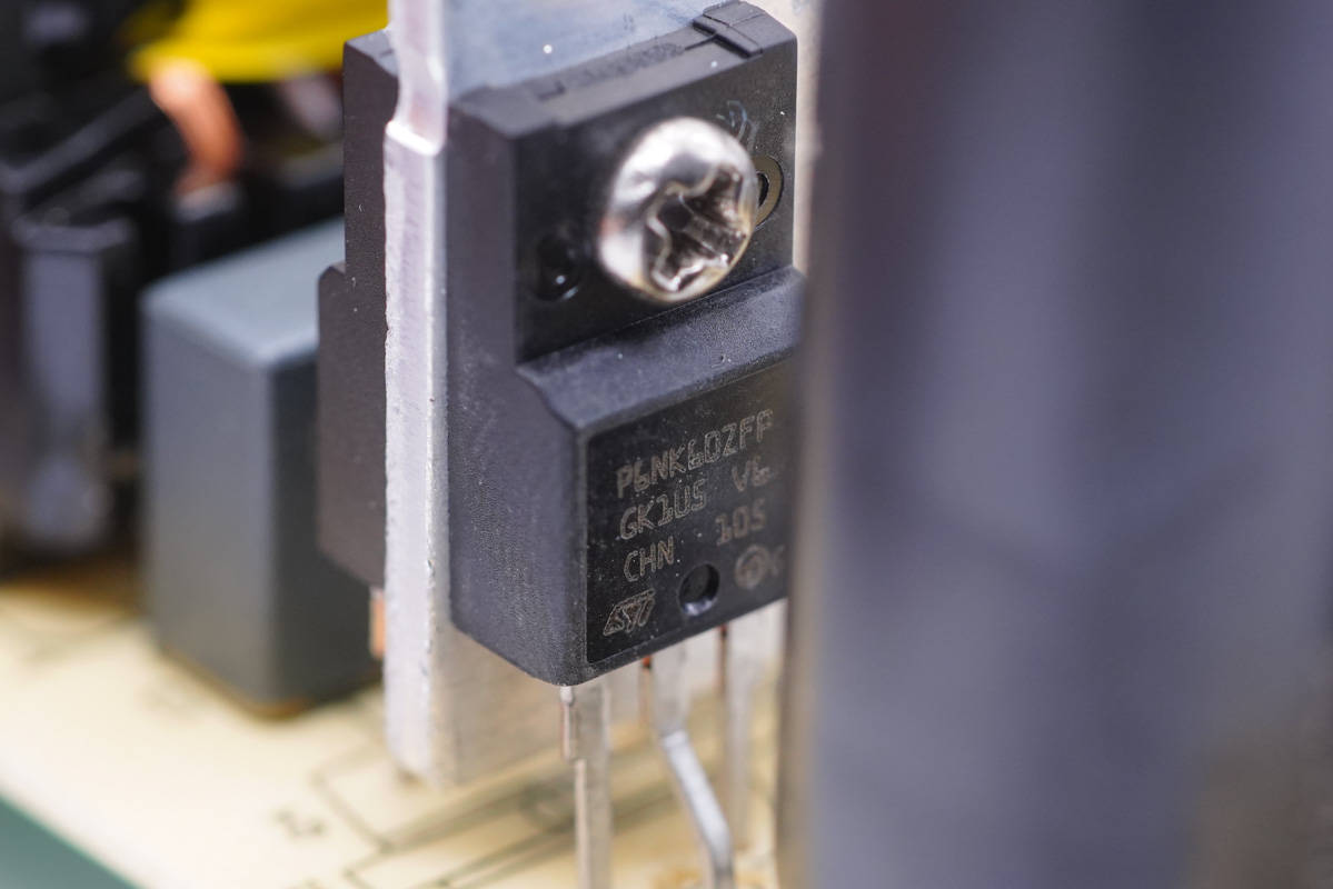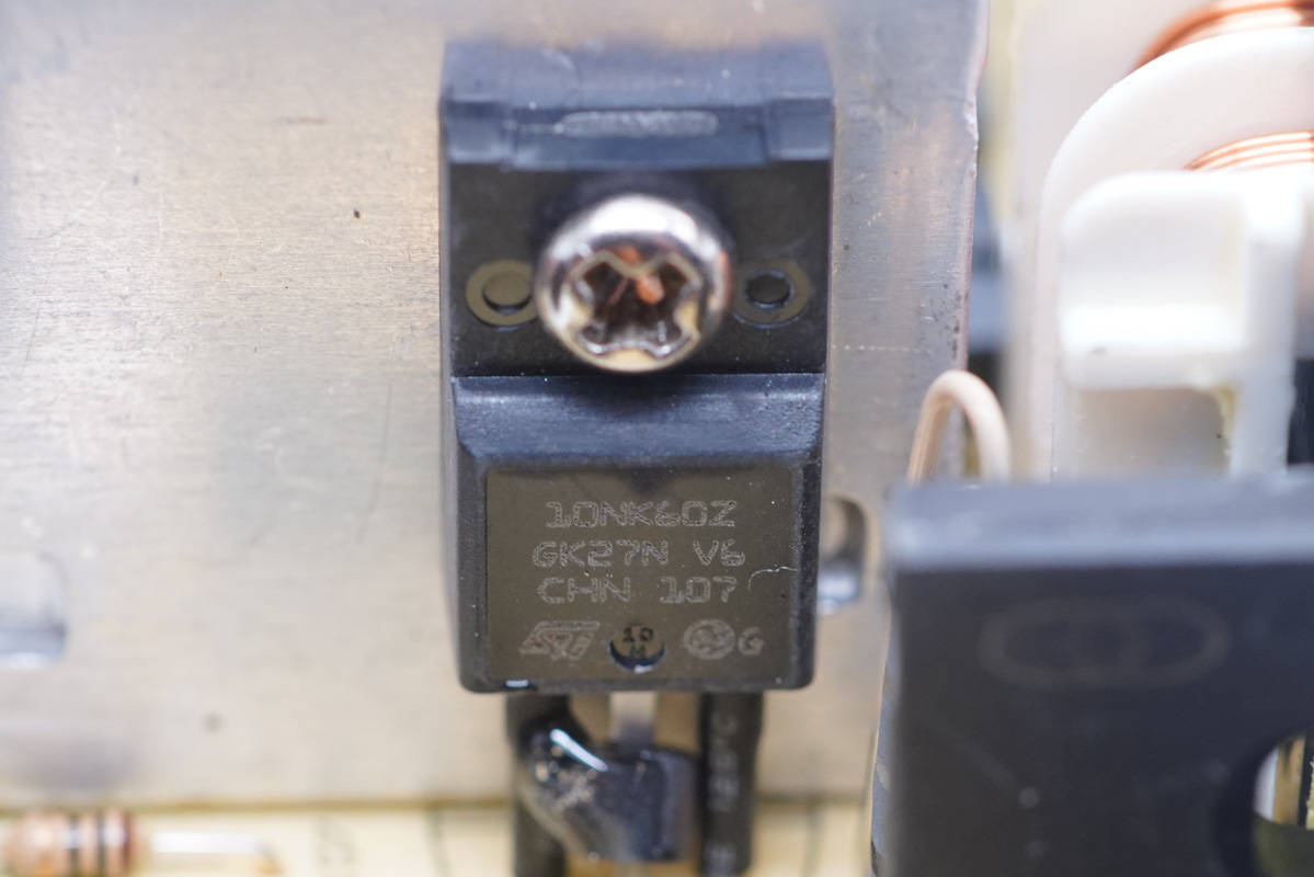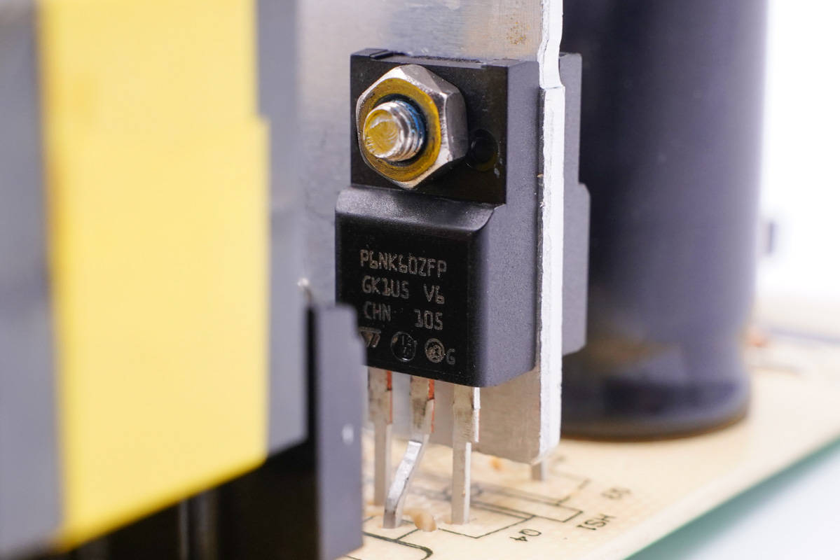 LLC开关管采用意法半导体STP6NK60ZFP,耐压600V,导阻1Ω,TO220FP封装。另外一颗固定在背面。